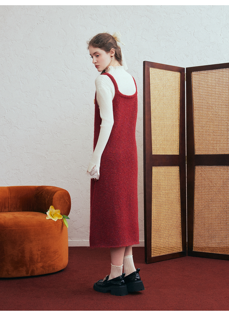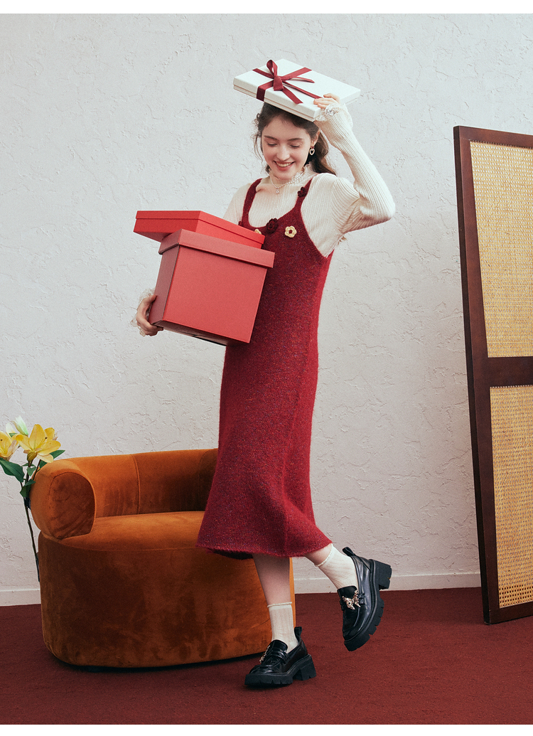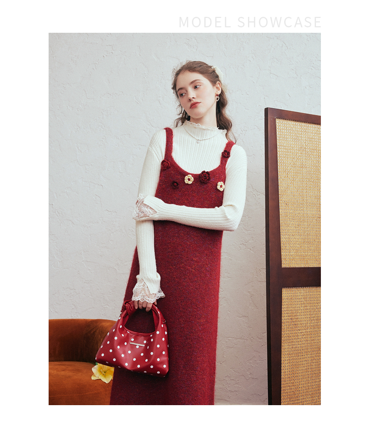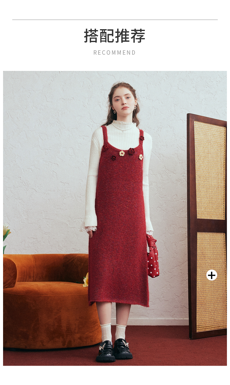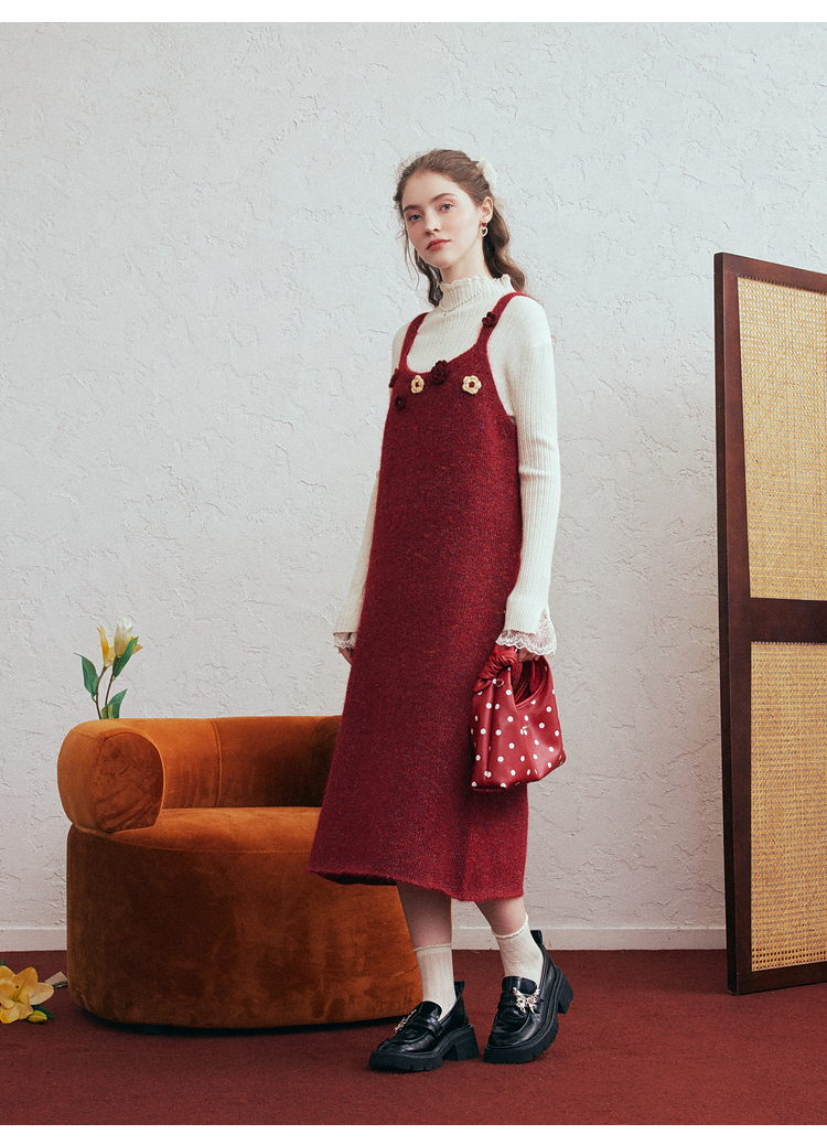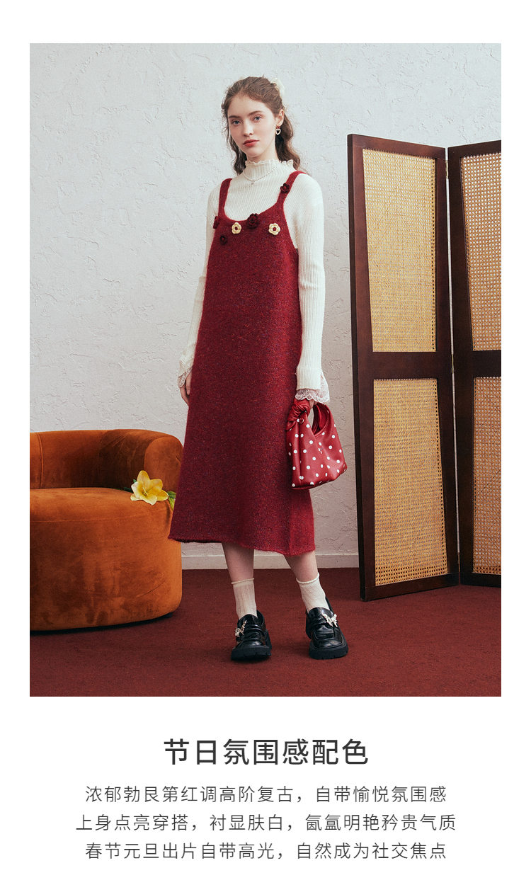 两三事 微茸蔷薇 2026春季新款立体手钩花吊带裙毛织连衣裙