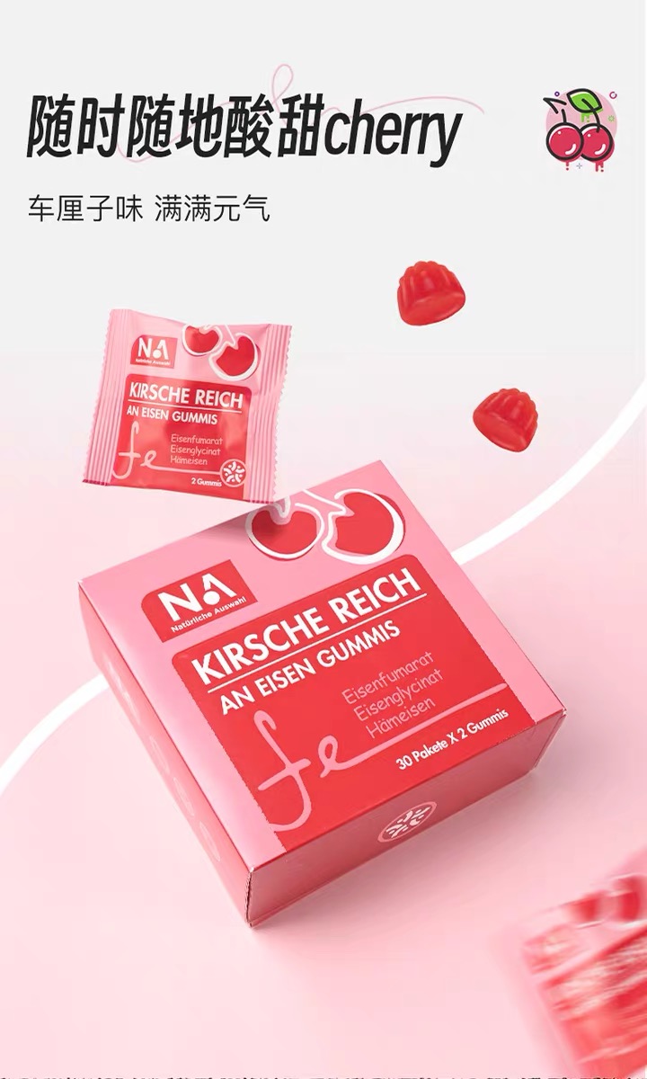 NA车厘子富铁补铁软糖60粒/盒 贫血女补充胶原蛋白0脂养护气血