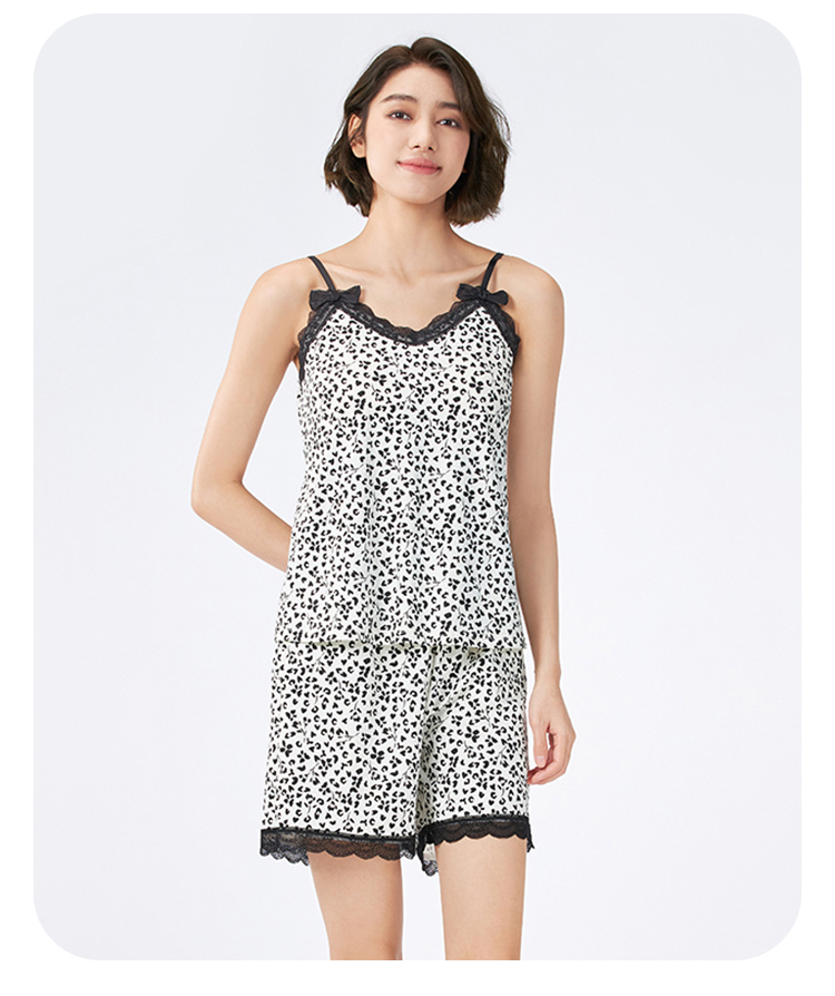 都市丽人女士棉质吊带套装薄32支纯棉单面生活家居袖类LHH2G8
