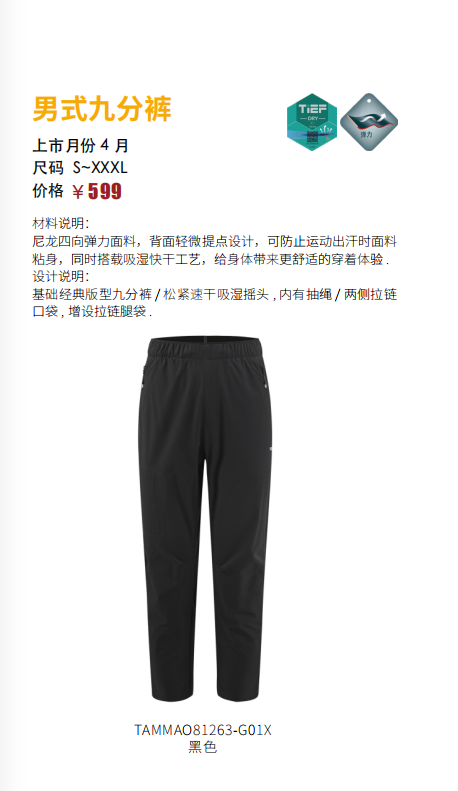 探路者男式松紧九分裤TAMMAO81263