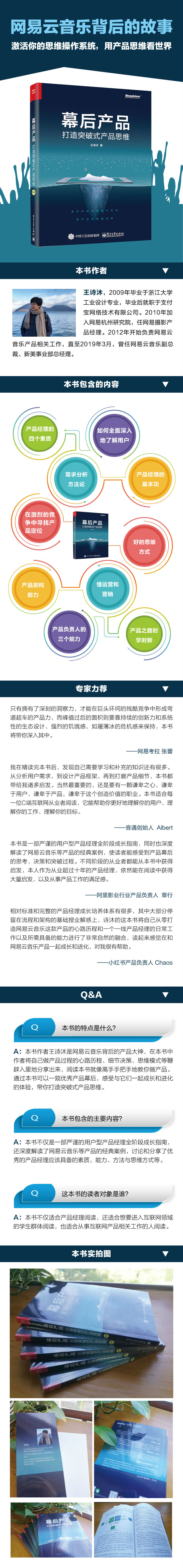 本书试图贯穿从产品经理新人到产品负责人的整个过程,分享、讨论优秀的产品经理所需具备的素质、能力、方法与思维方式等。本书不仅是一部严谨的用户型产品经理全阶段成长指南,还深度解读了网易云音乐等产品的经典案例。通过本书可以一窥优秀产品的幕后,感受与它们一起成长和进化的体验。