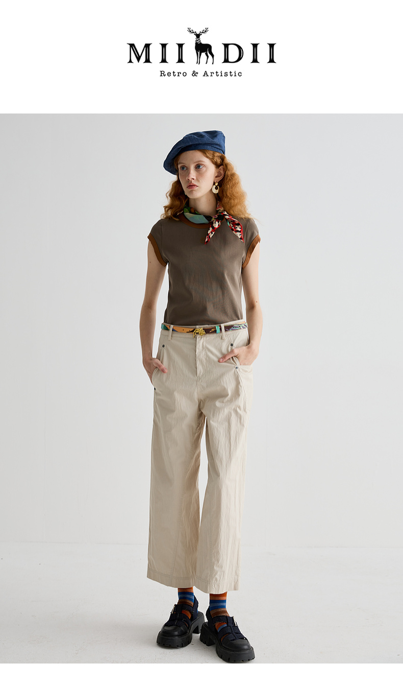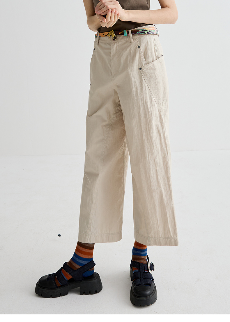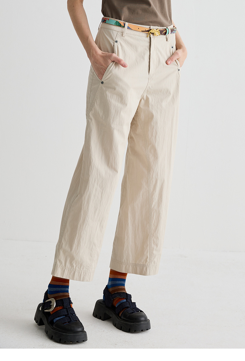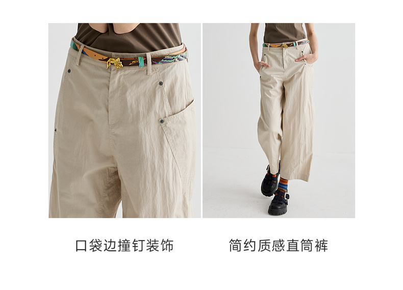 谜底休闲裤女2025夏季新品通勤立体撞钉宽松直筒九分裤252MK0531
