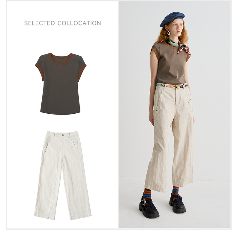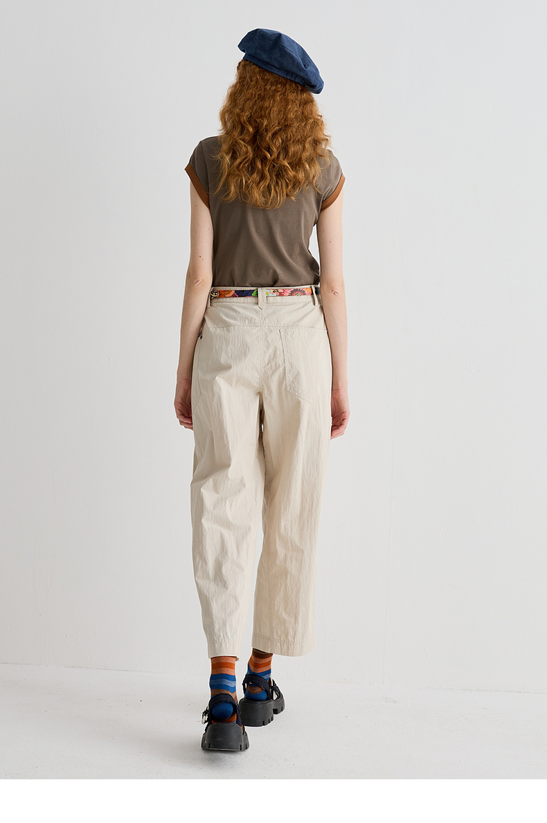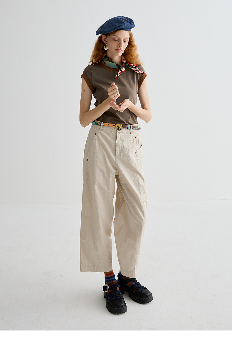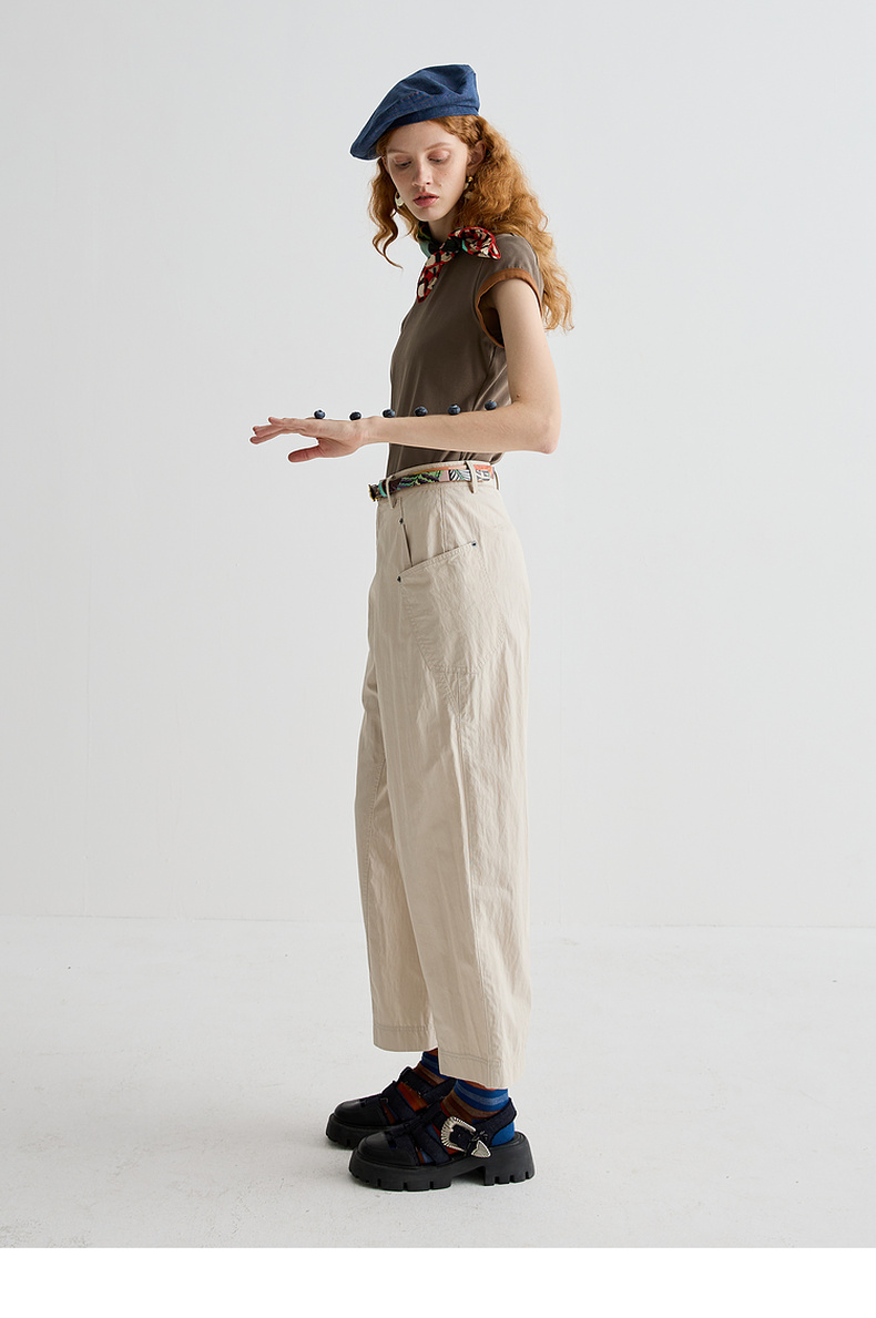 谜底休闲裤女2025夏季新品通勤立体撞钉宽松直筒九分裤252MK0531