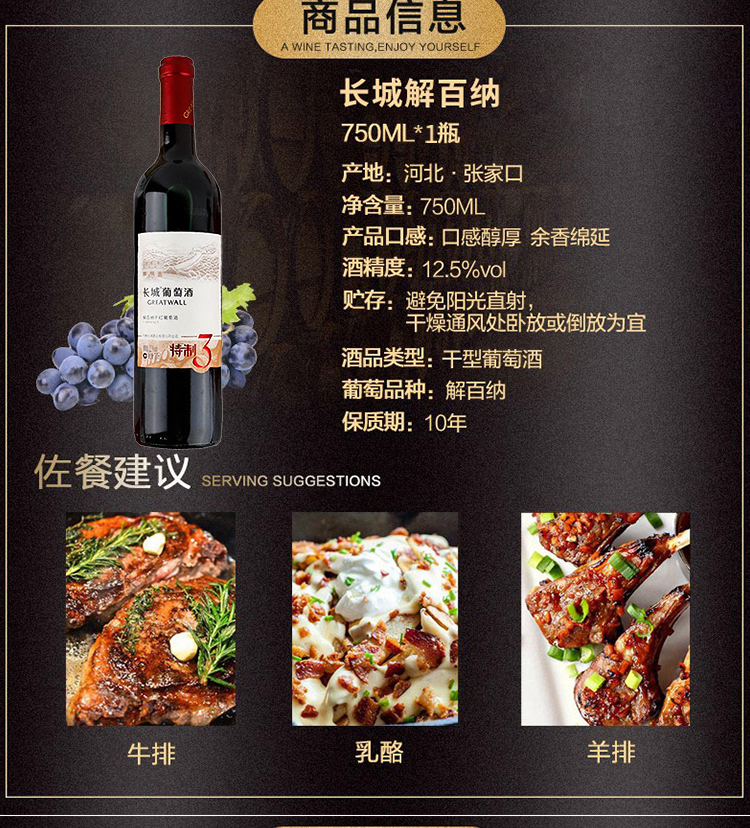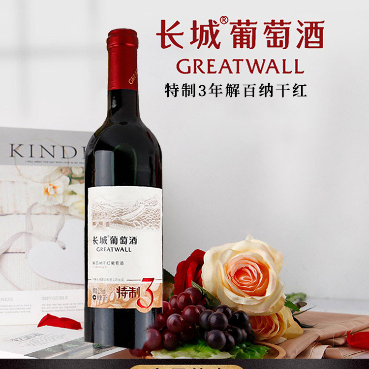 长城特制3年解百纳干红葡萄酒12.5度750ml(长城方盒)(买1送1)