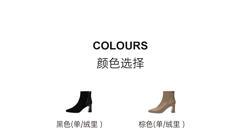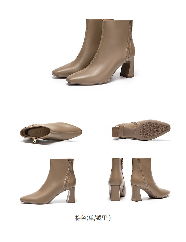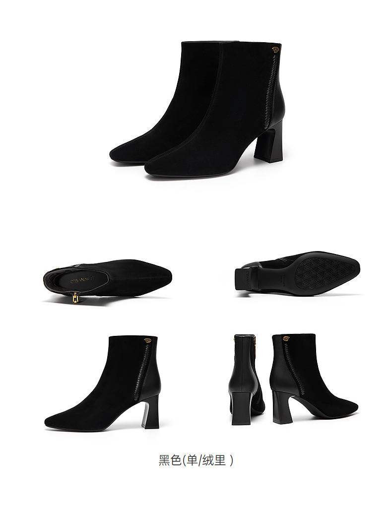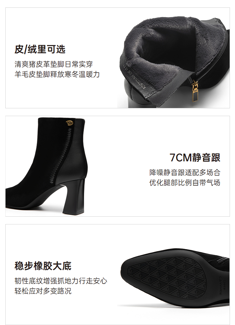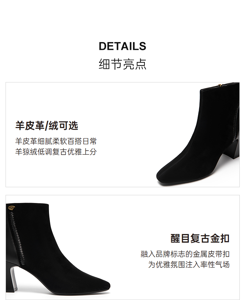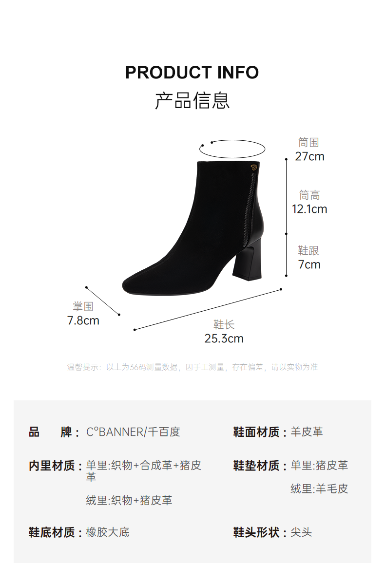 【静音系列】千百度通勤粗高跟时装靴女羊皮加绒短靴A25577234