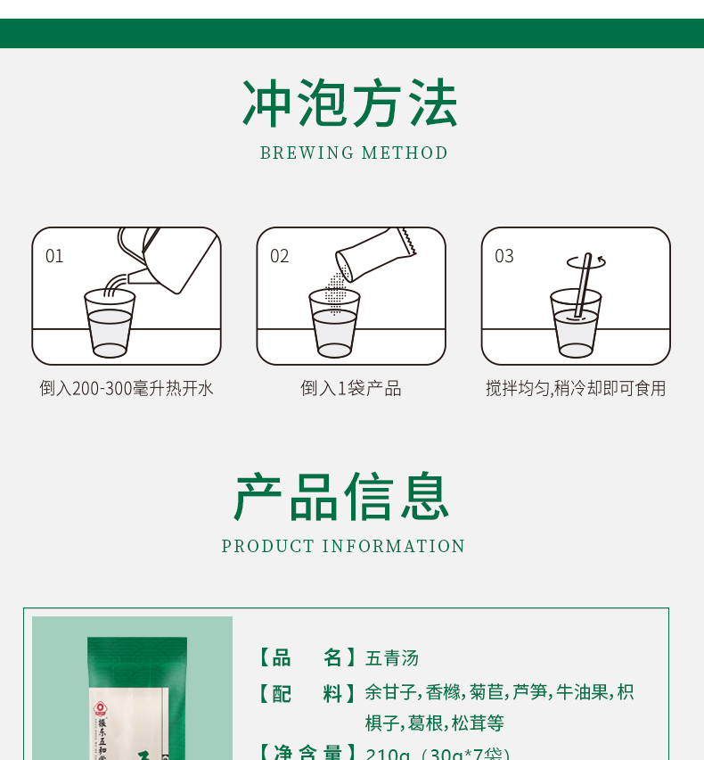 五和医养堂 五青汤葛根绿豆余甘子蒲公英芦笋原材料营养健康30g*7袋