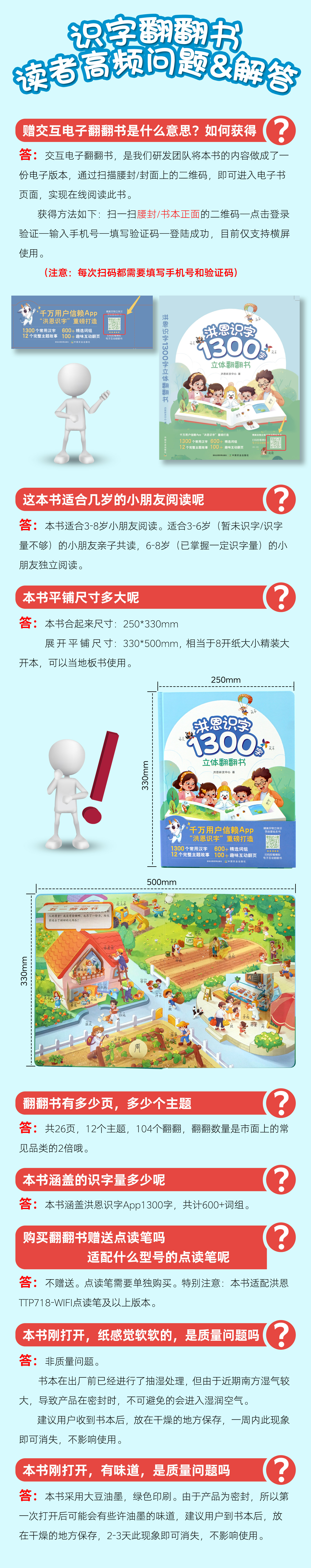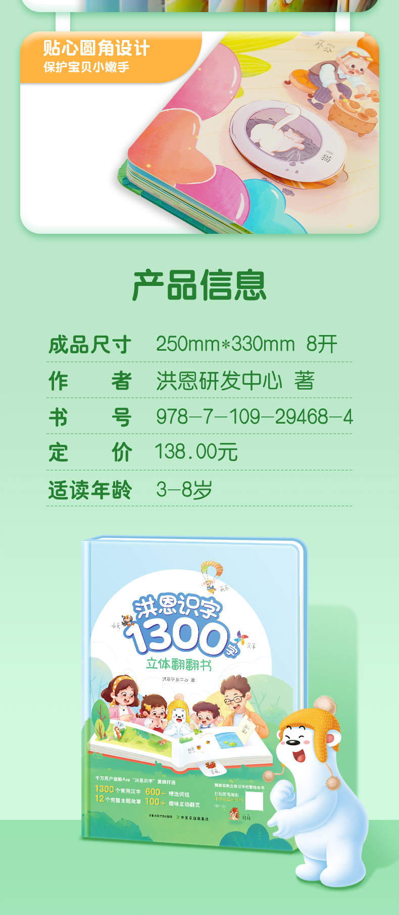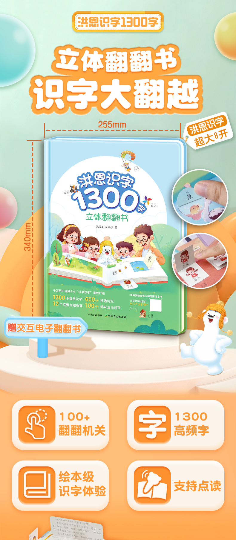 洪恩识字立体翻翻书【1300字,600+常用词,100+创意翻翻机关,8开大精装】官方正版
