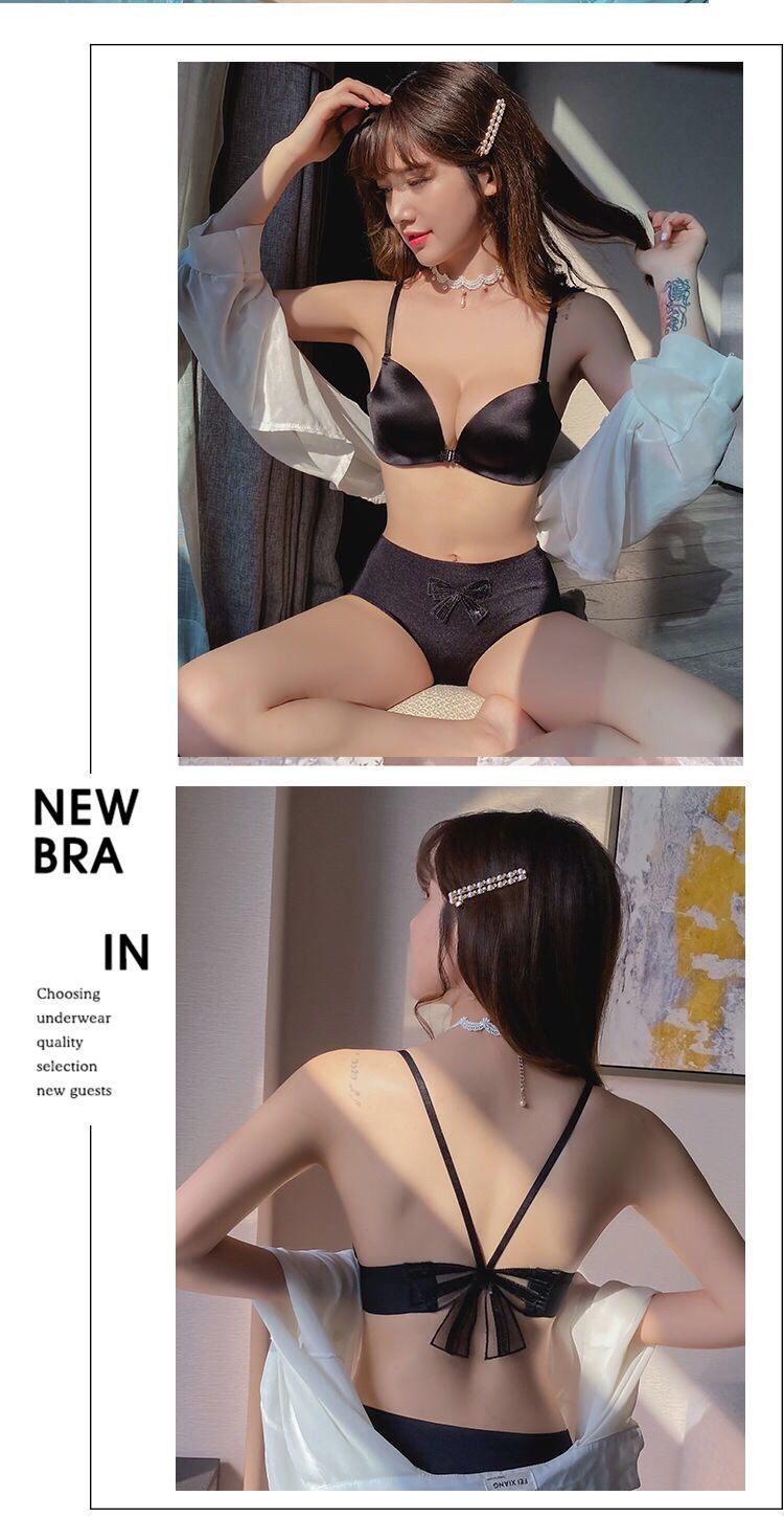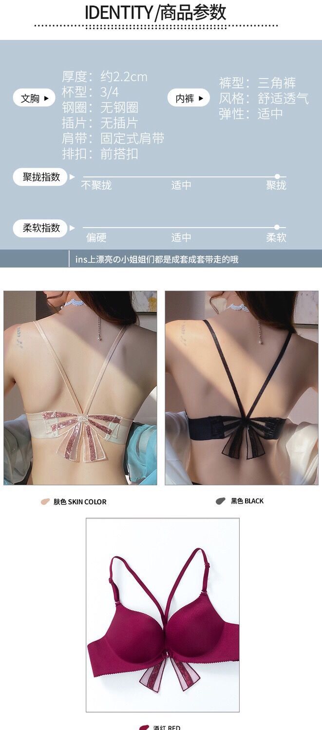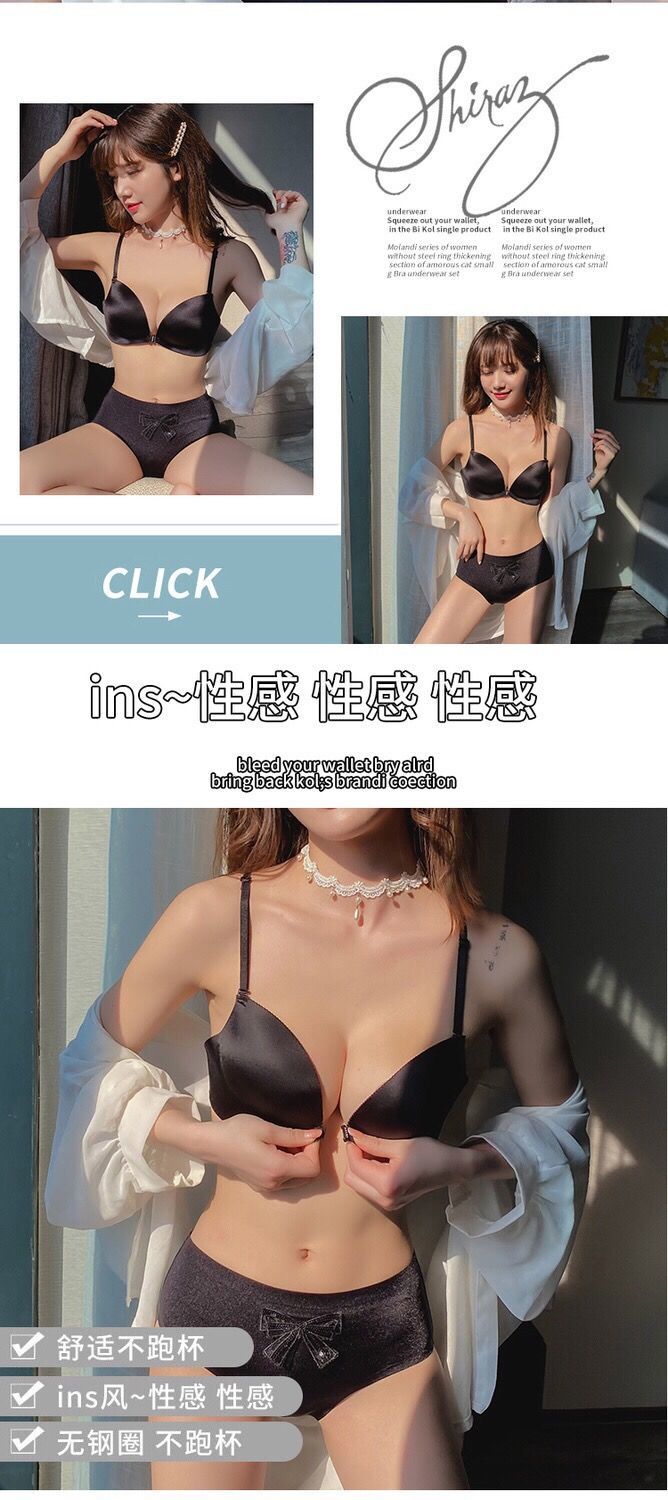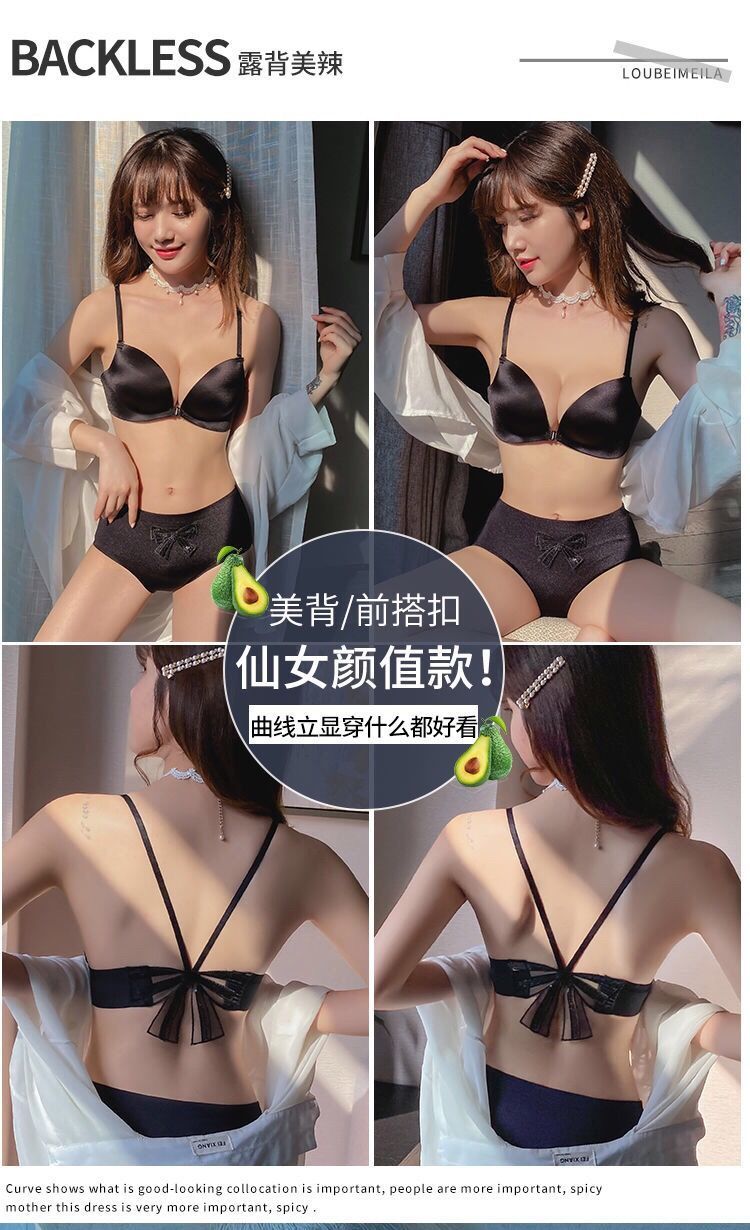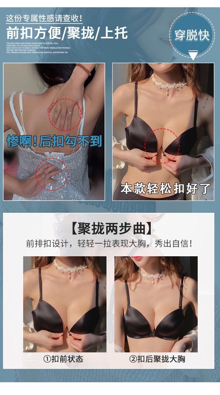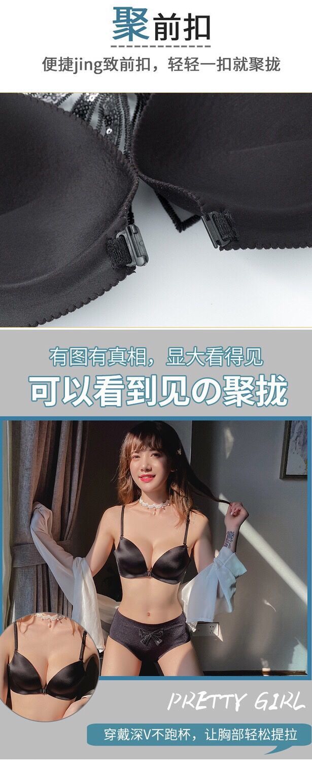 【新款】无痕性感收副乳防下垂厚文胸前扣美背小胸罩聚拢无钢圈内衣女套装