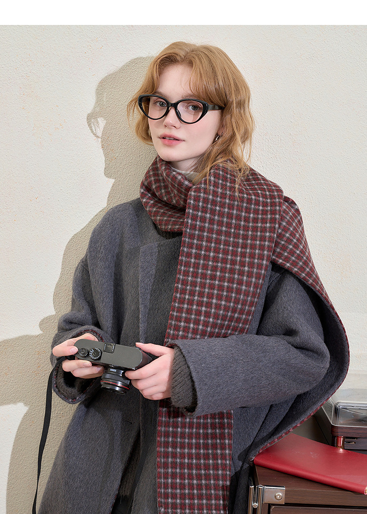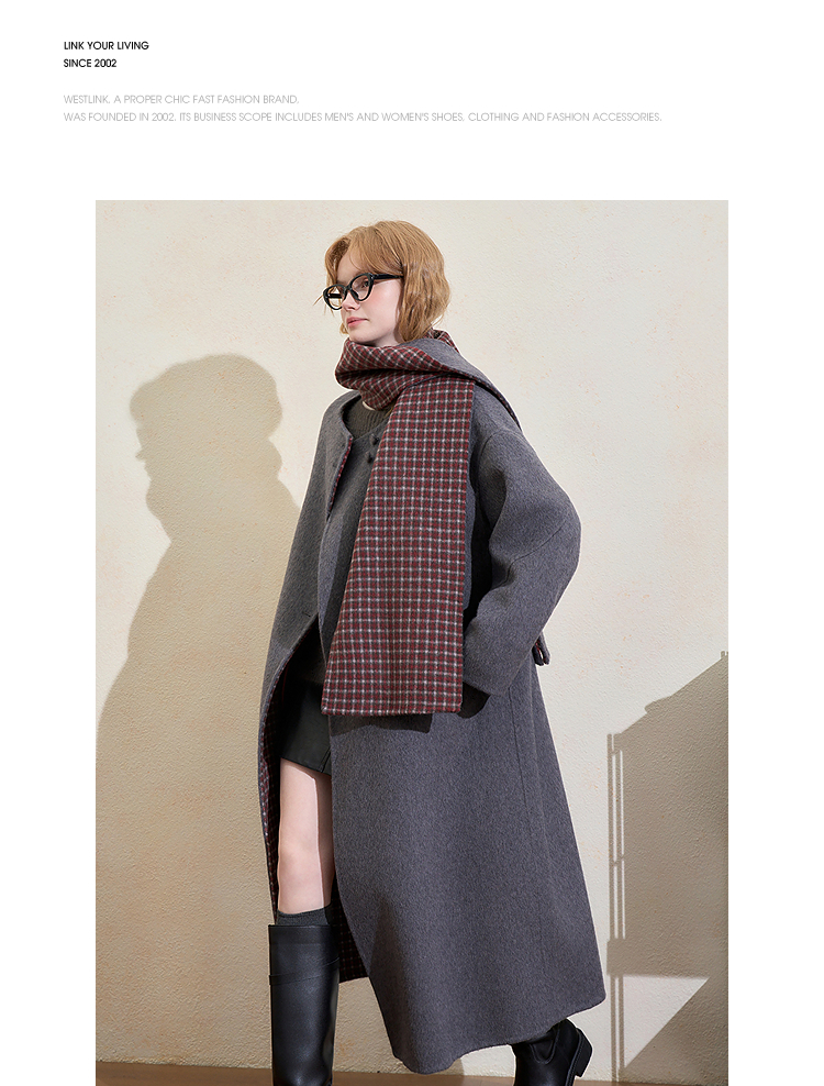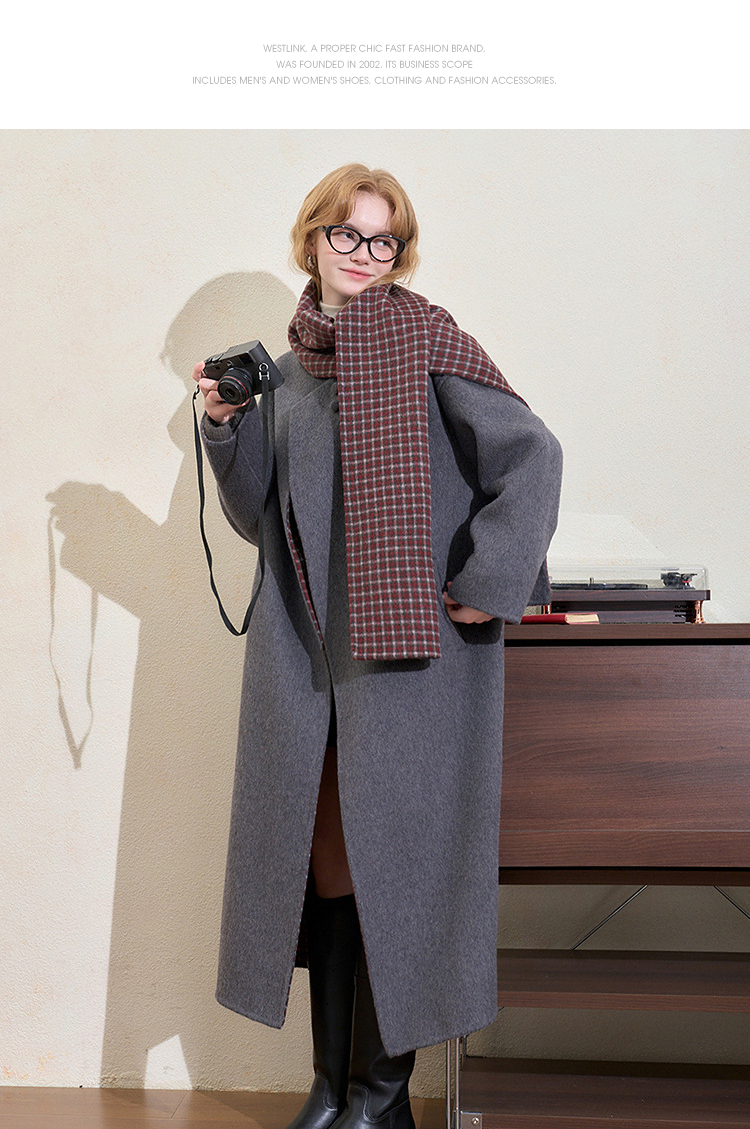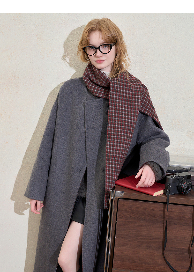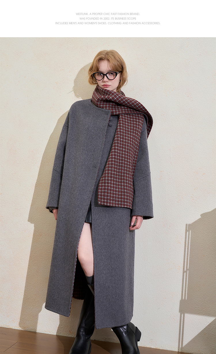 西遇气质格纹双面毛呢外套女2025冬季新款高级感显瘦长款呢子大衣H0055307