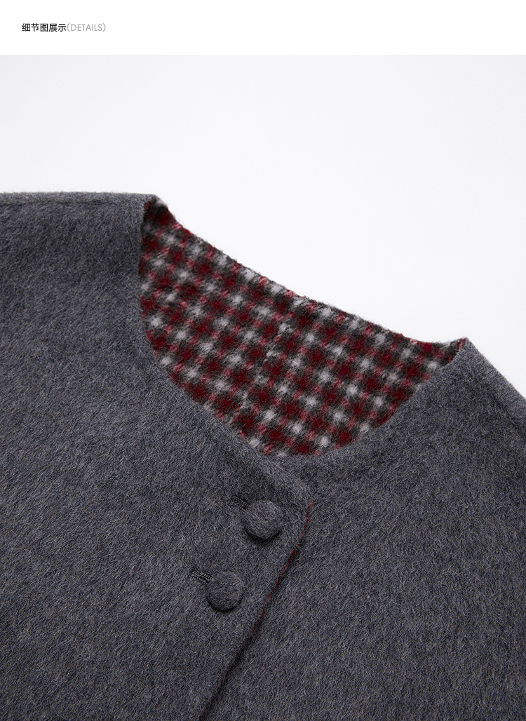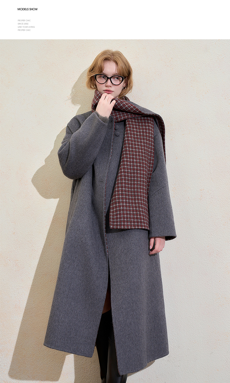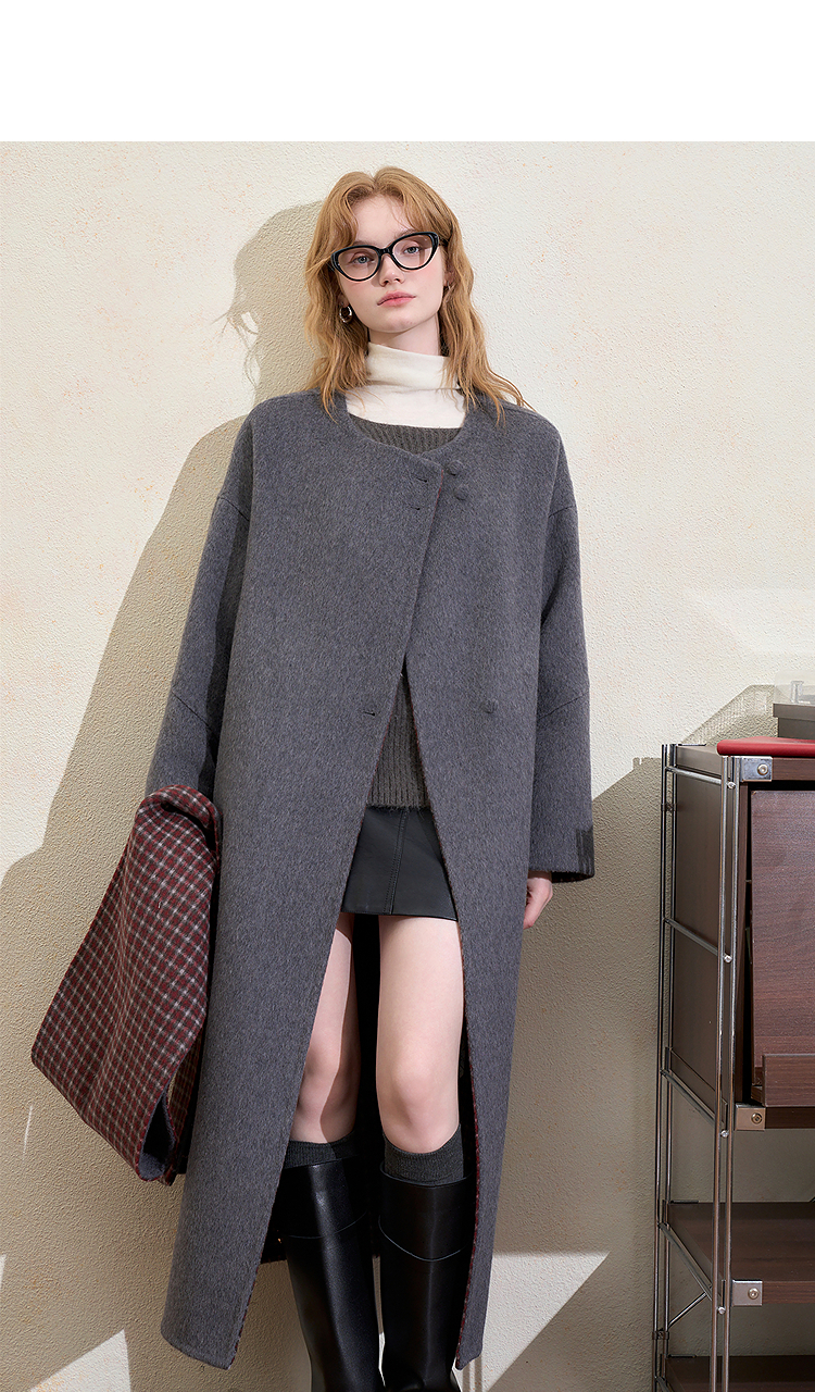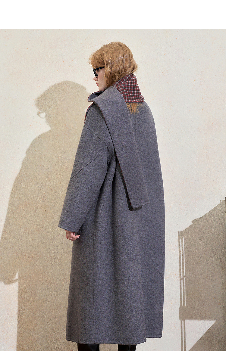 西遇气质格纹双面毛呢外套女2025冬季新款高级感显瘦长款呢子大衣H0055307