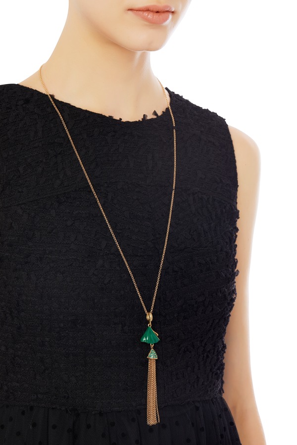 DEDE迪迪 孔雀绿流苏项链 4995