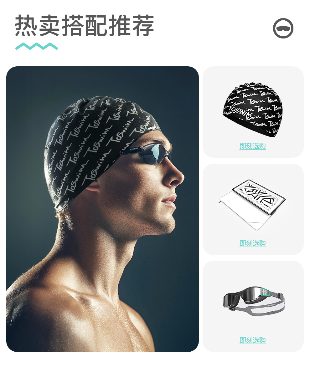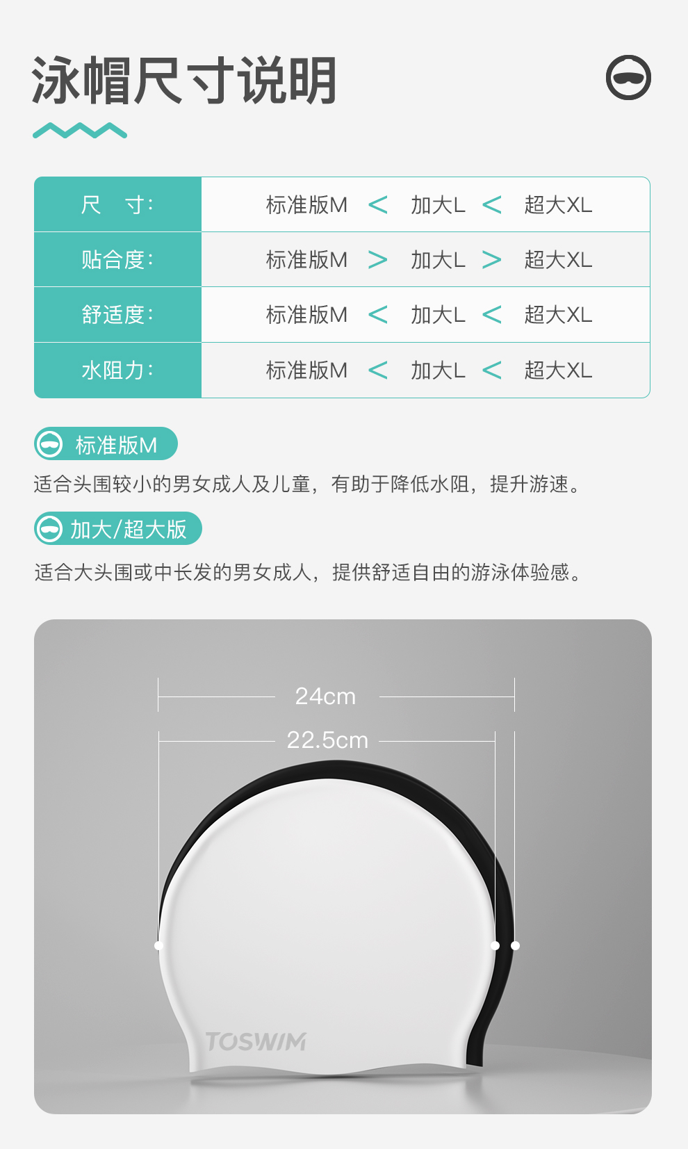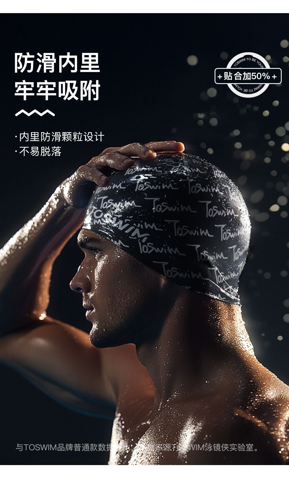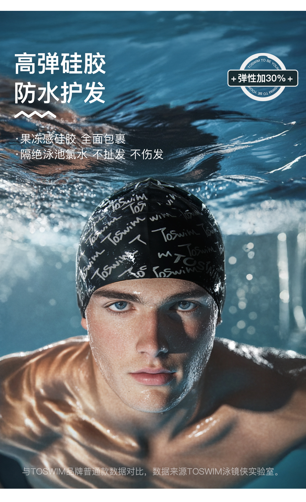泳镜侠推荐!TOSWIM防水硅胶加大包裹性强男女通用时尚潮酷游泳帽