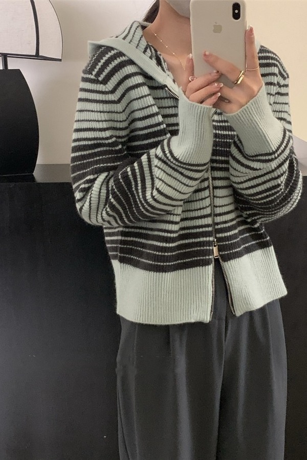 LNNNS 浅绿条纹拉链外套 17307