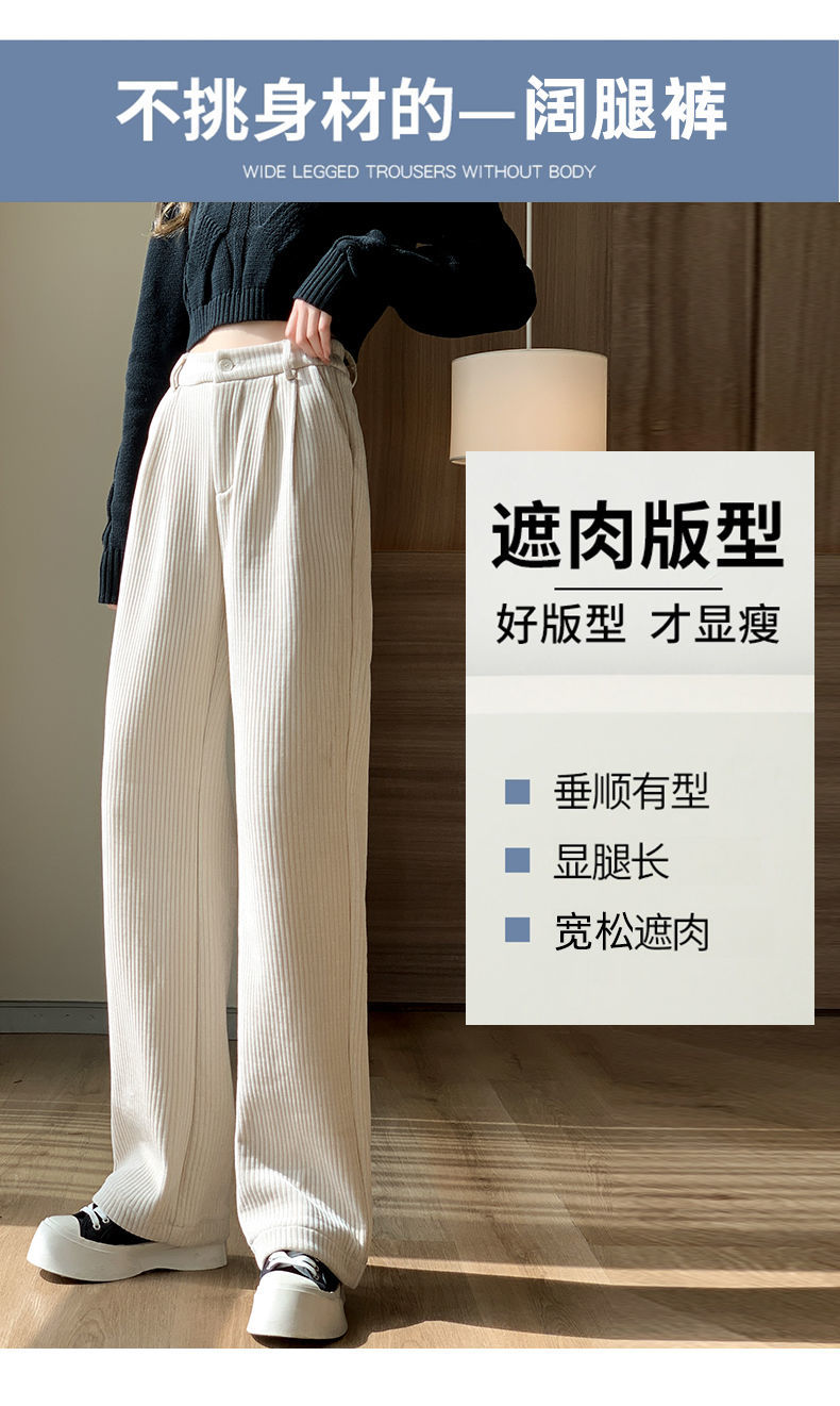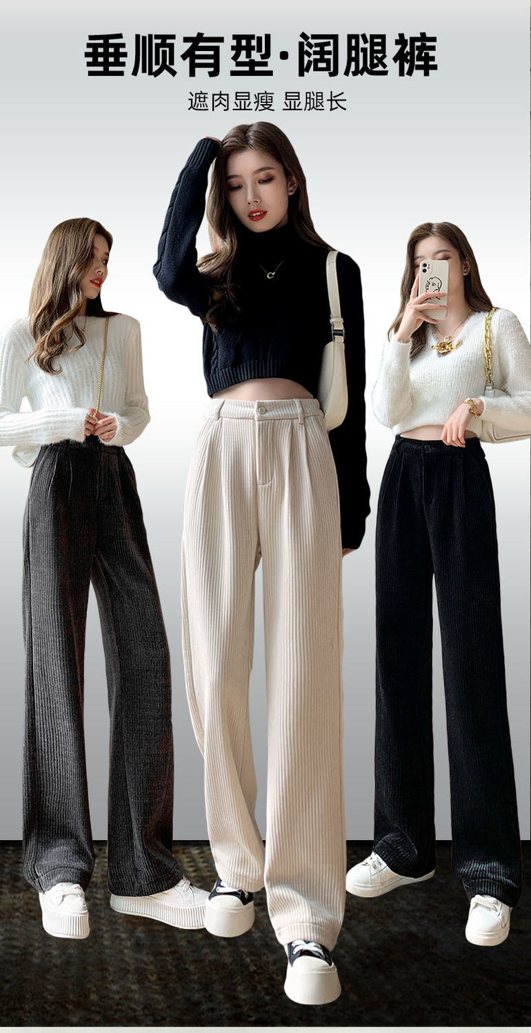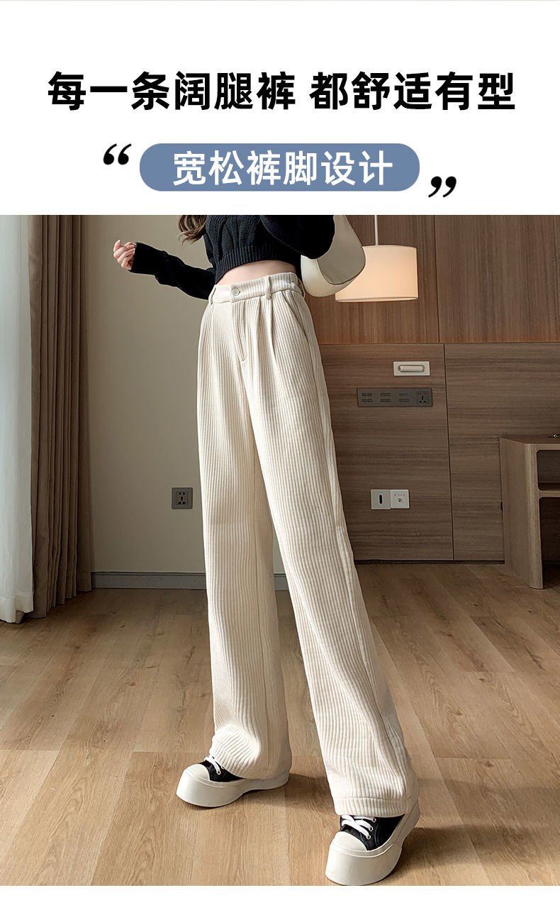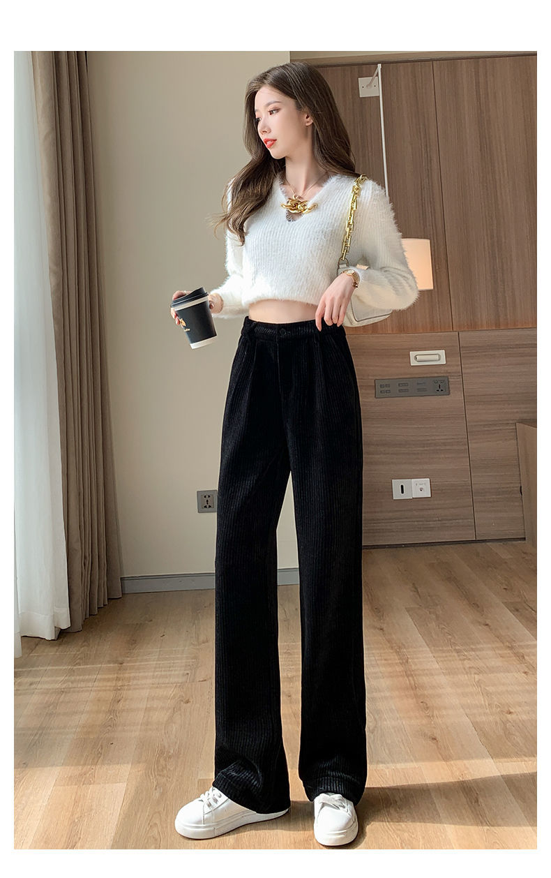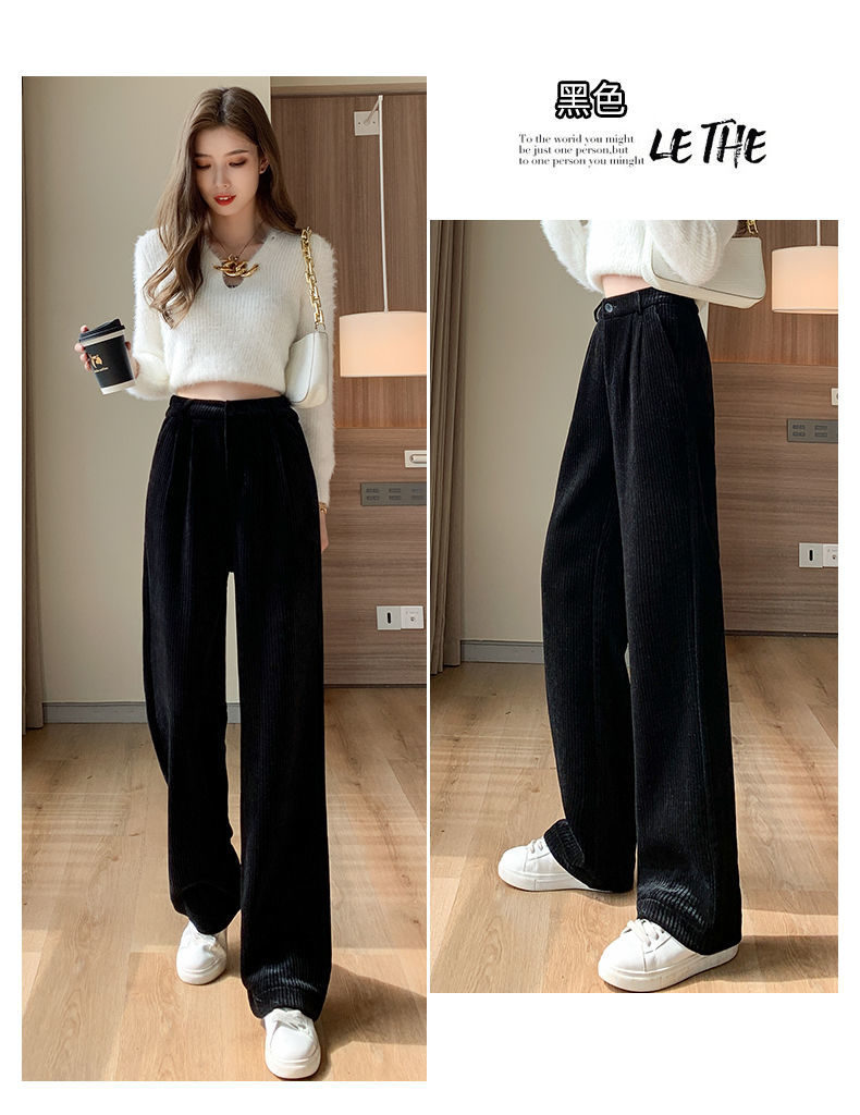 【柔软舒适 垂顺有型】灯芯绒阔腿裤女秋冬季高腰垂坠感宽松直筒黑色休闲拖地裤子