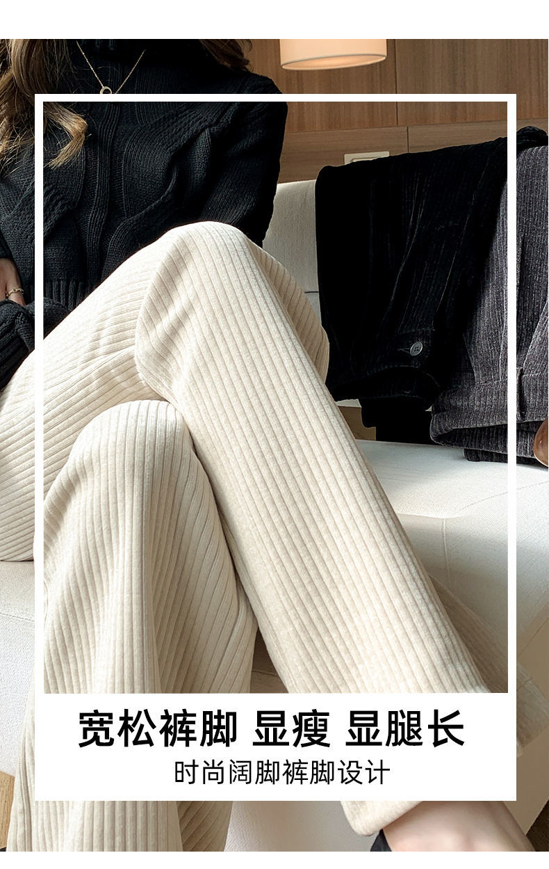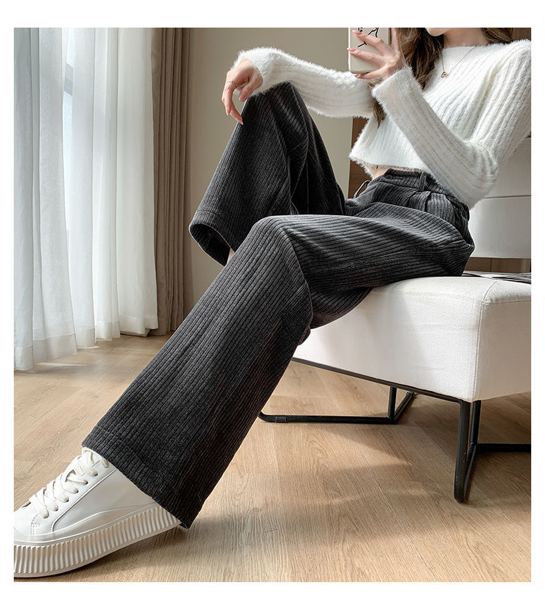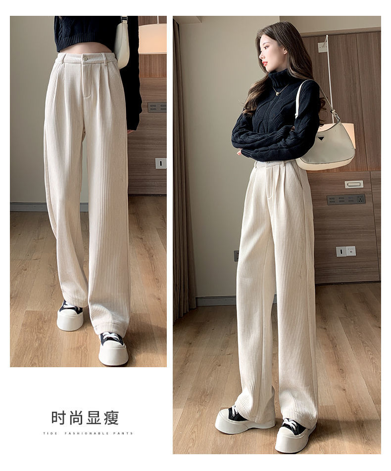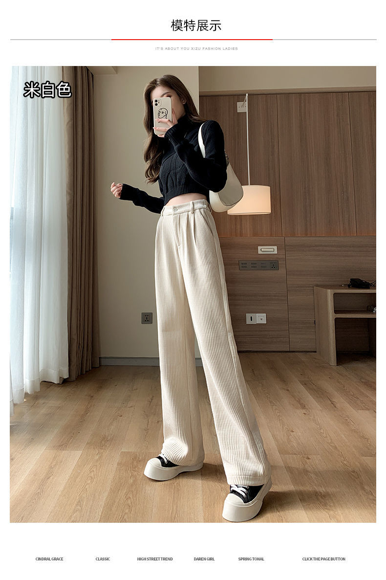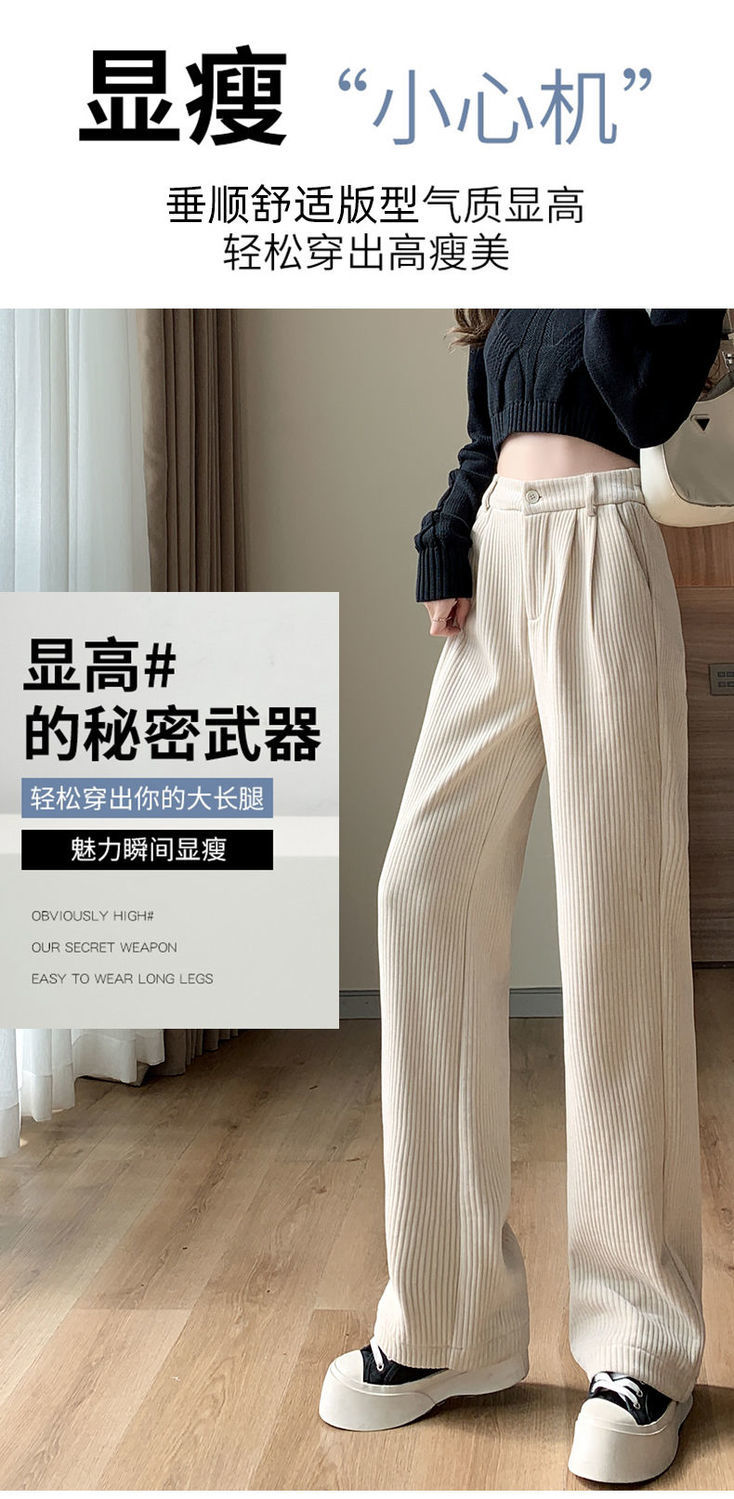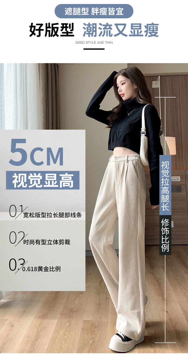【柔软舒适 垂顺有型】灯芯绒阔腿裤女秋冬季高腰垂坠感宽松直筒黑色休闲拖地裤子