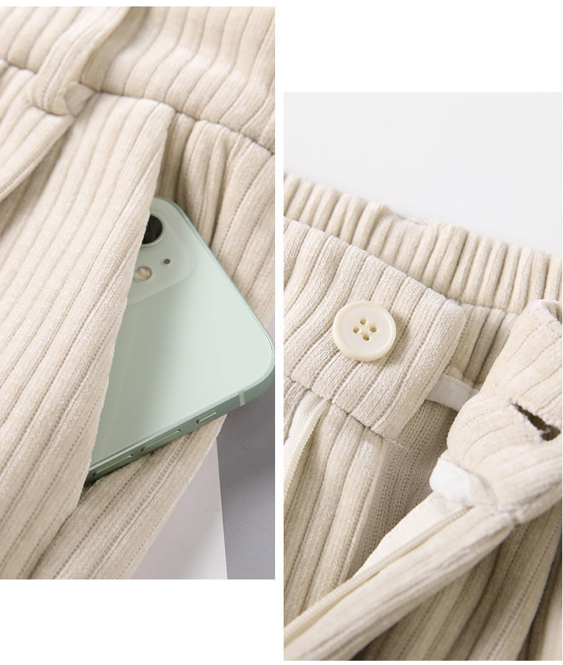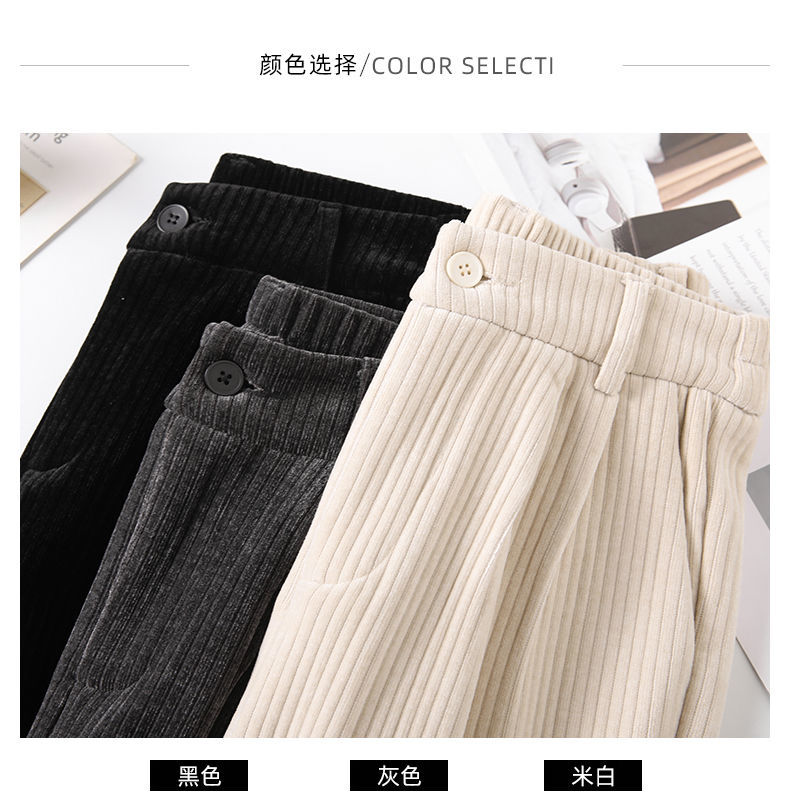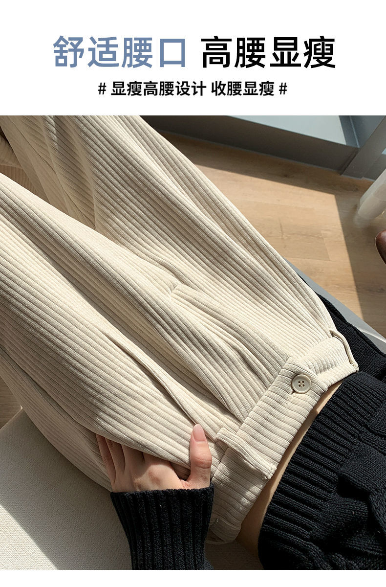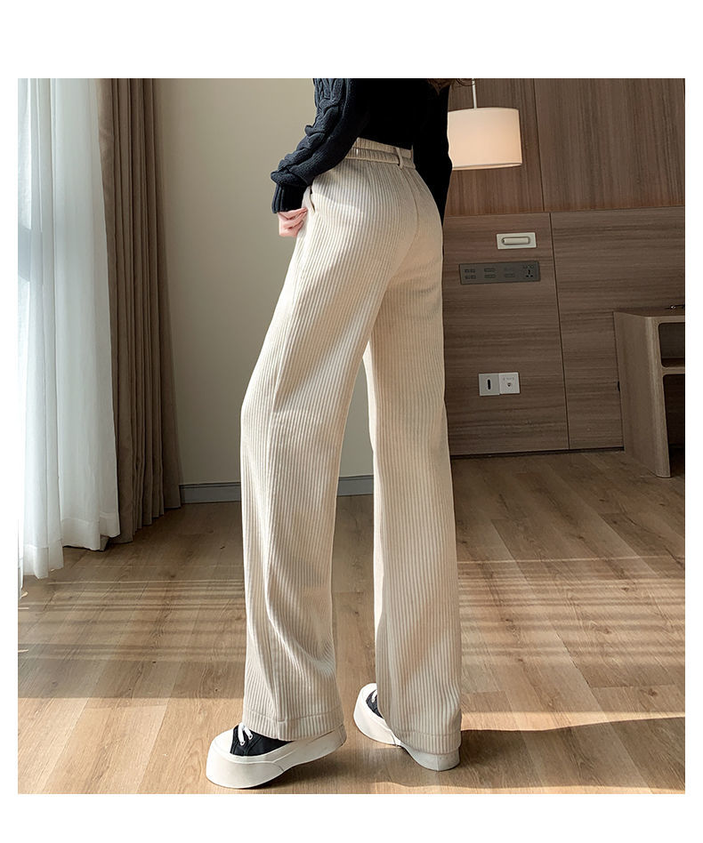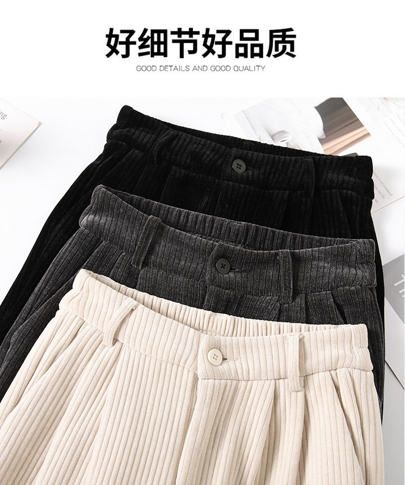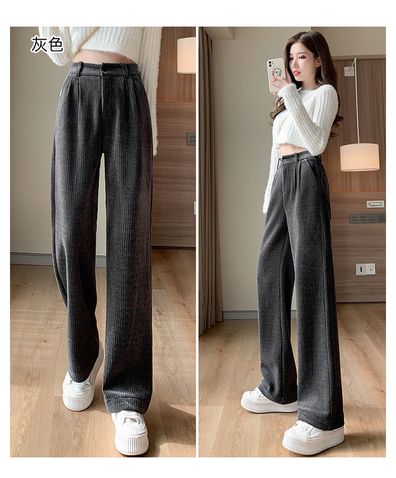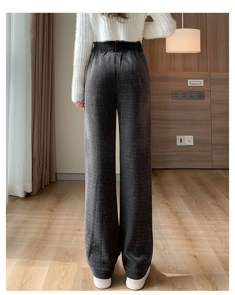 【柔软舒适 垂顺有型】灯芯绒阔腿裤女秋冬季高腰垂坠感宽松直筒黑色休闲拖地裤子
