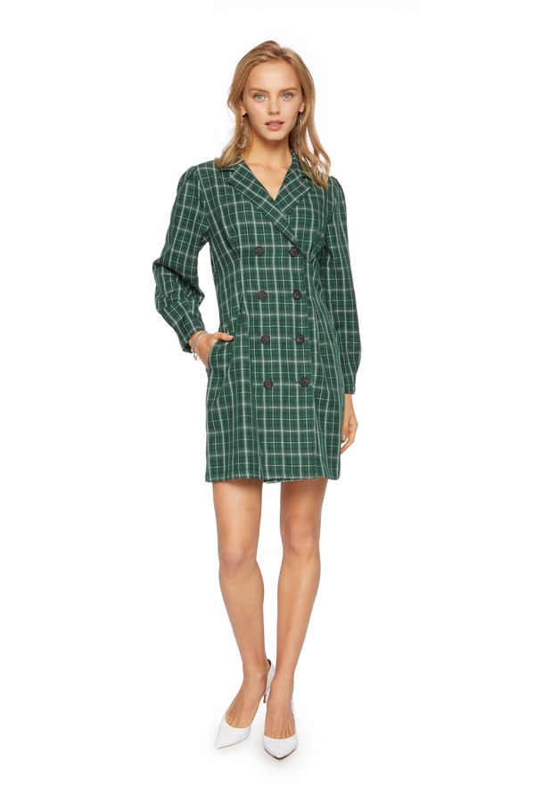 HAYES 绿色格纹插袋连衣裙 5447