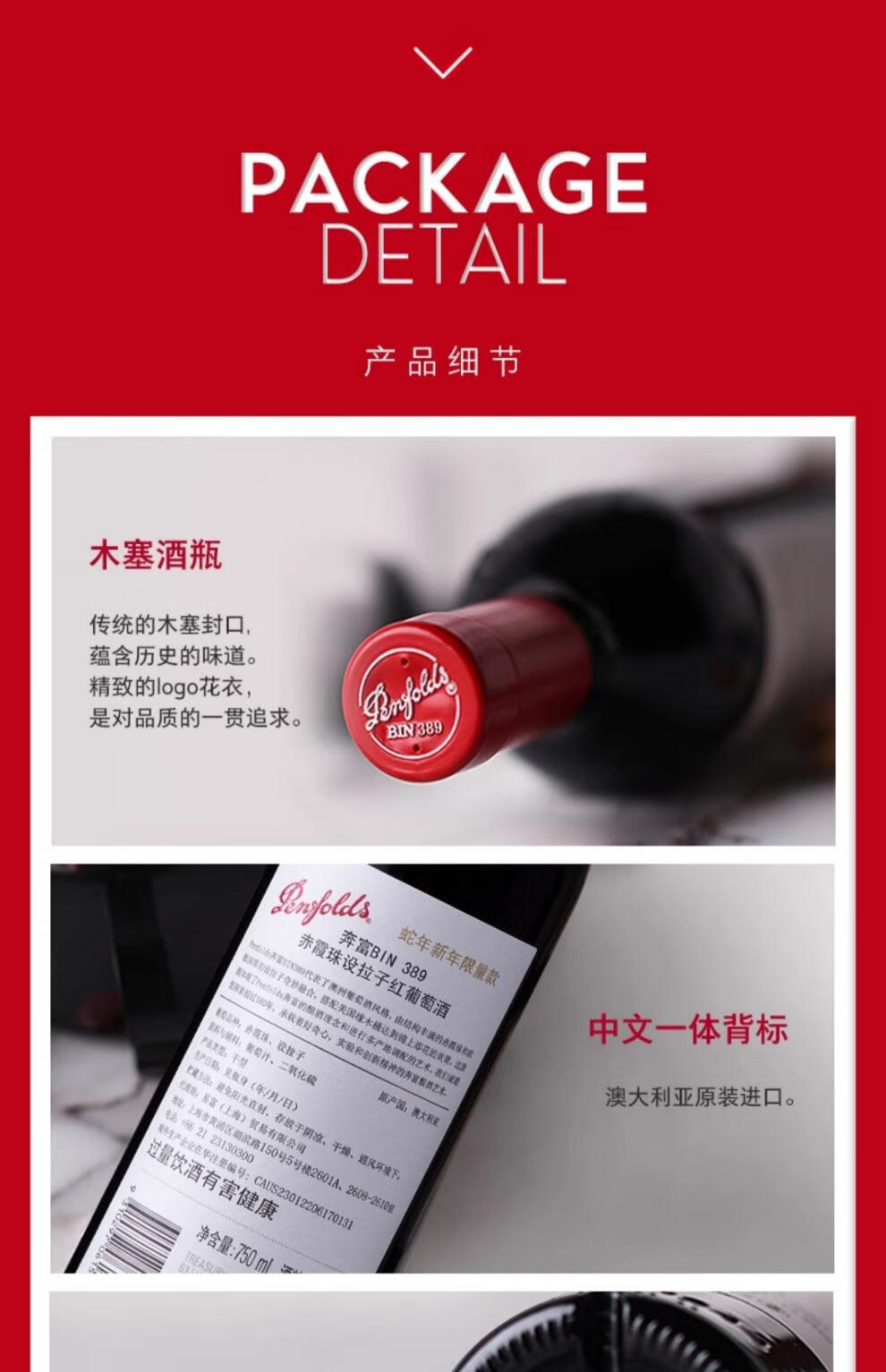 Penfolds奔富蛇年BIN389赤霞珠设拉子红葡萄酒澳洲原装进口干红正品官方旗舰店