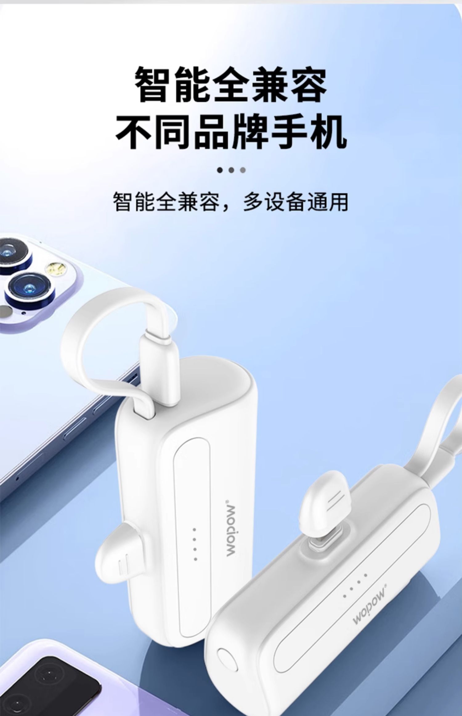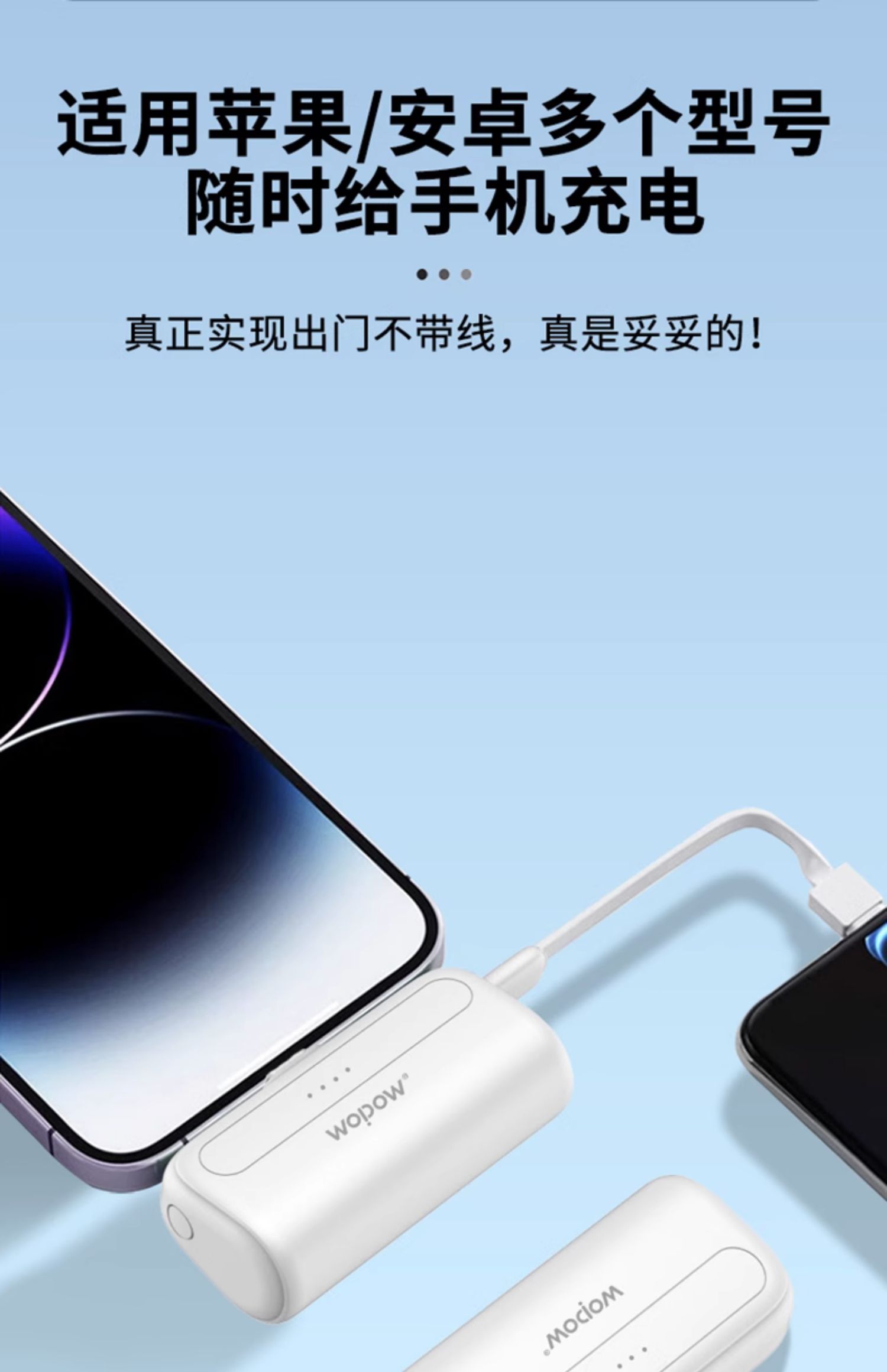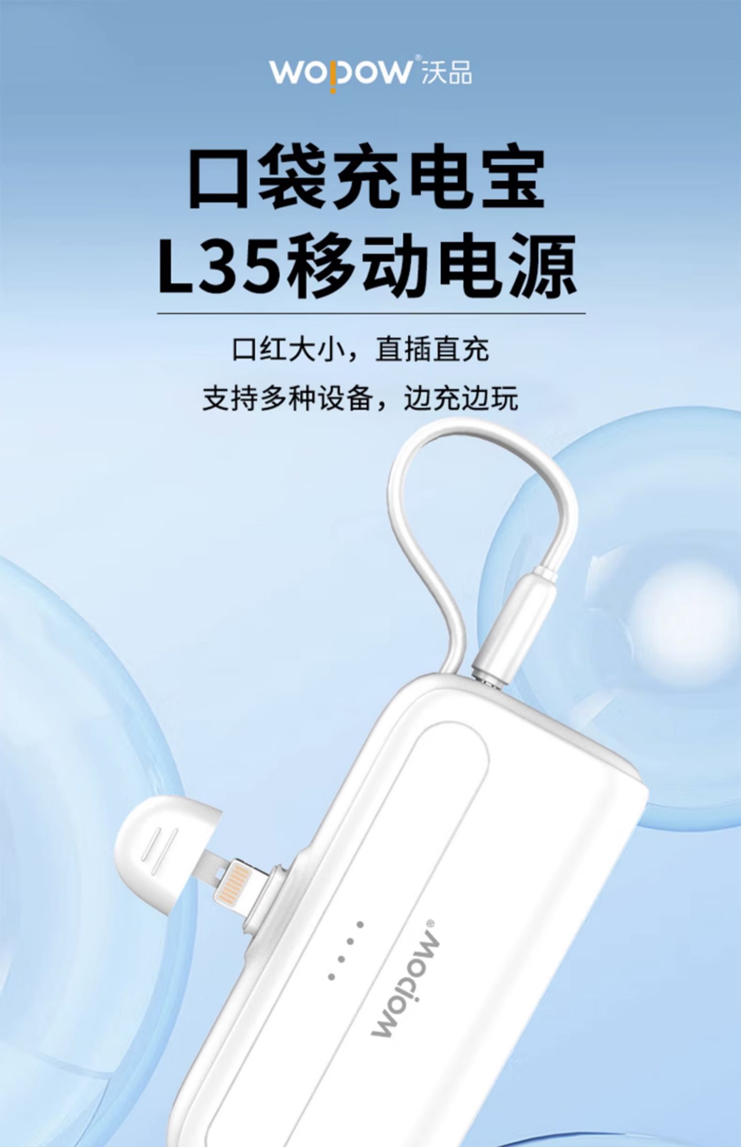 WOPOW沃品超迷你充电宝可上飞机10W口袋式小巧便携自带双线不易发烫携适用于苹果华为安卓L35