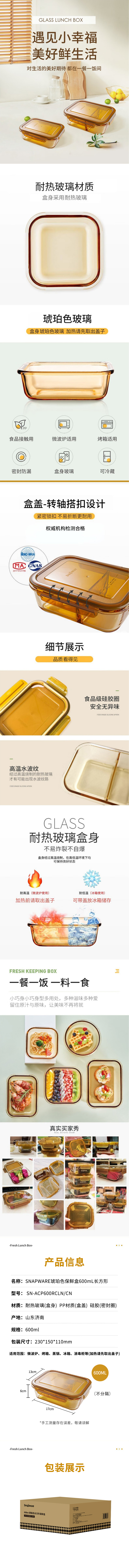 康宁琥珀色保鲜盒600mL长方形