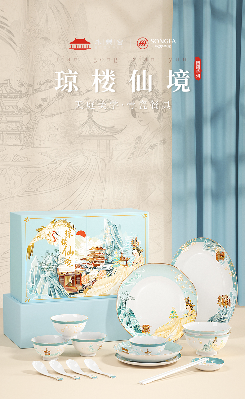 松发陶瓷琼楼仙境6头1人份/碗1+勺1+盘2+碟1+筷子1