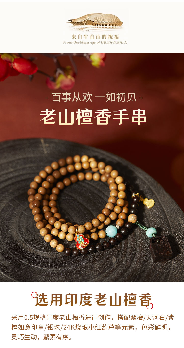 牛首山一如初见老山檀香手串本命年转运珠送女友老婆朋友生日礼物