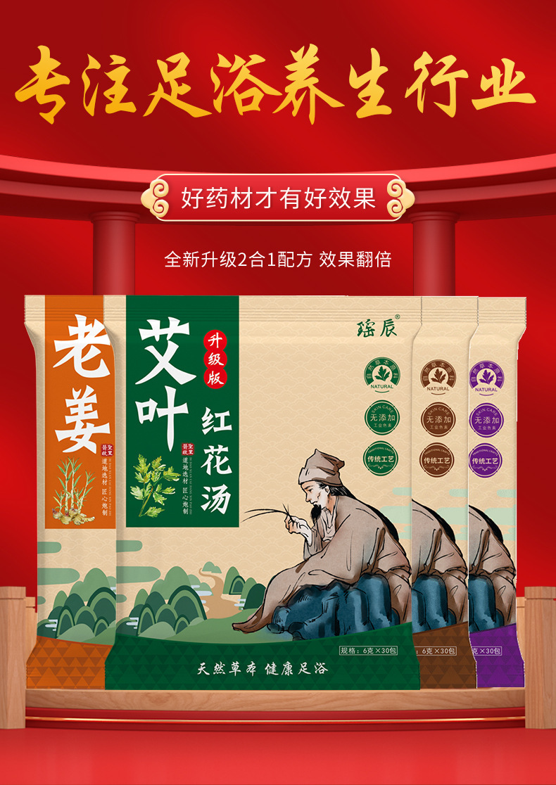 天然草本健康足浴包】让泡脚养生调理更简单,泡出理想 “形” 常泡常轻盈,2合1配方效果翻倍艾草泡脚粉包,艾叶老姜红花益母草本足浴粉泡脚药包QQ