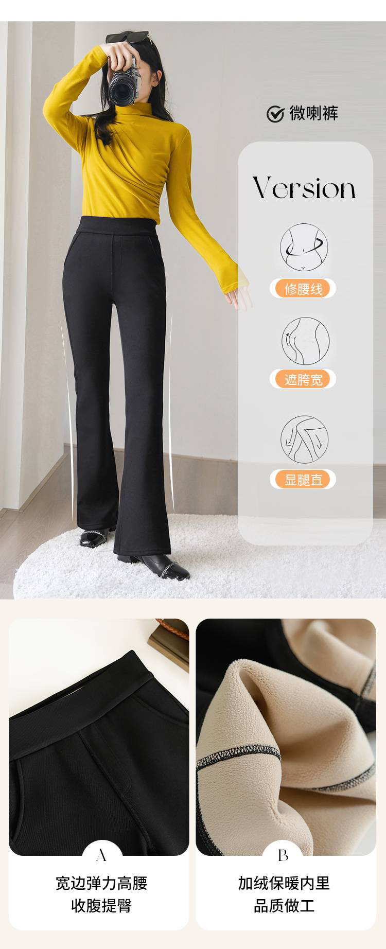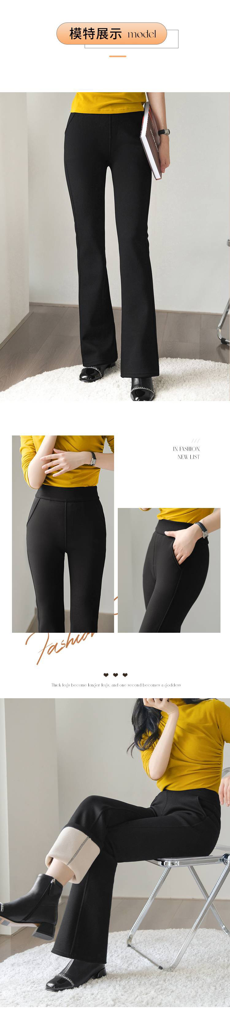 女士保暖加绒弹力泡芙云柔微喇裤
