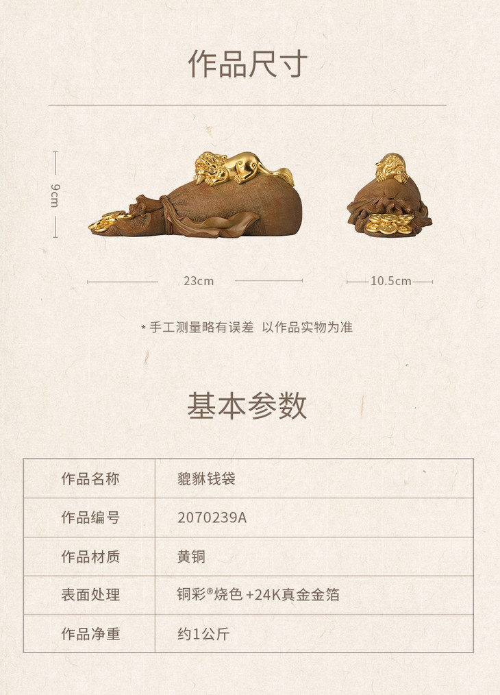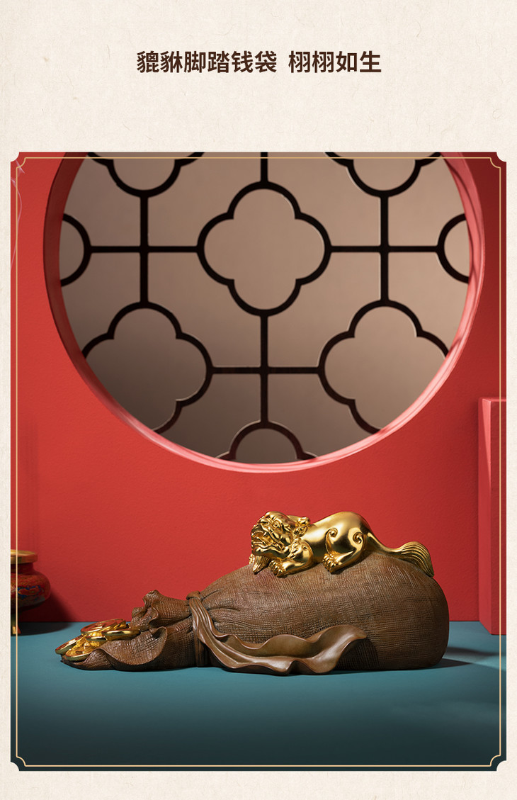 铜师傅 全铜摆件《貔貅钱袋》家居饰品 铜工艺品 客厅 礼品摆件