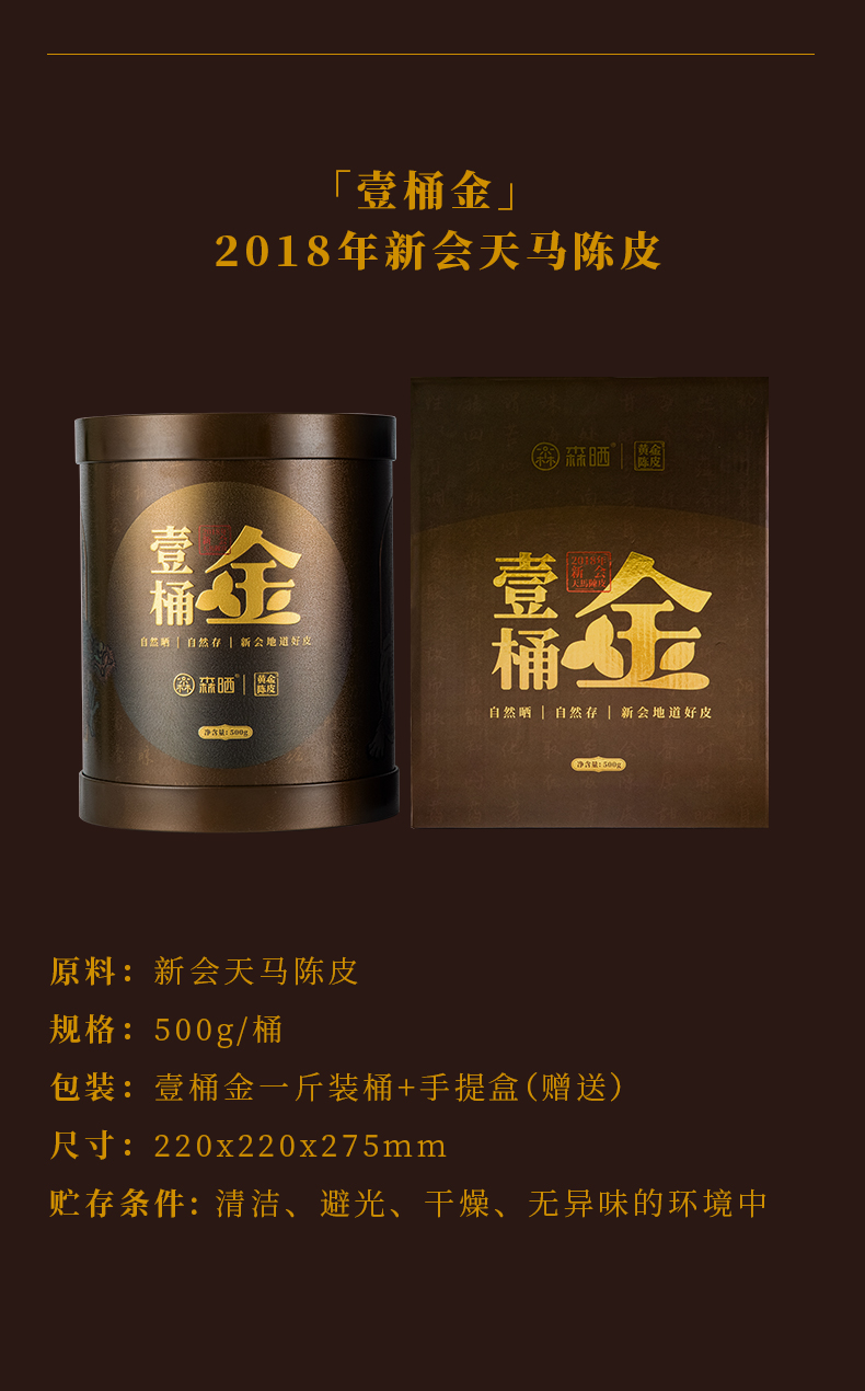 (1斤装)「壹桶金」2018年新会天马陈皮 森晒黄金陈皮【佳人严选】