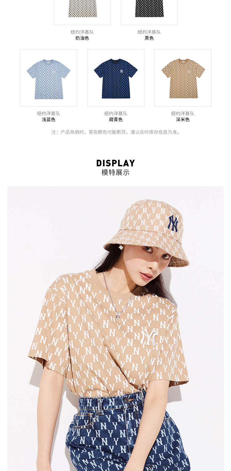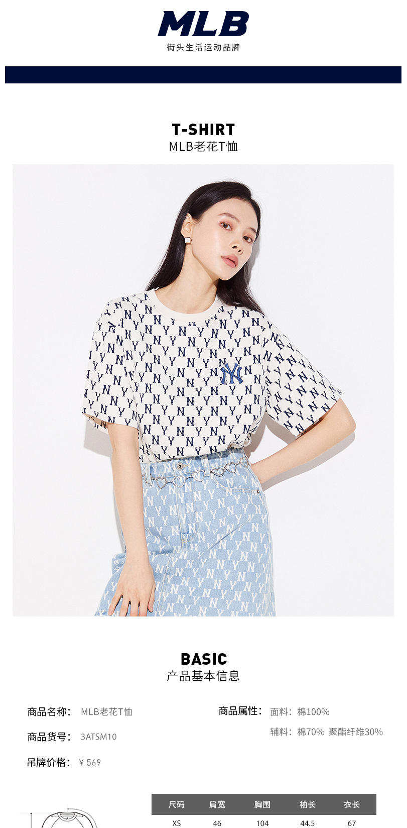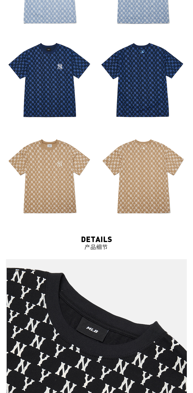 MLB男女情侣T恤复古老花圆领短袖运动休闲潮22春夏新款3ATSM1023