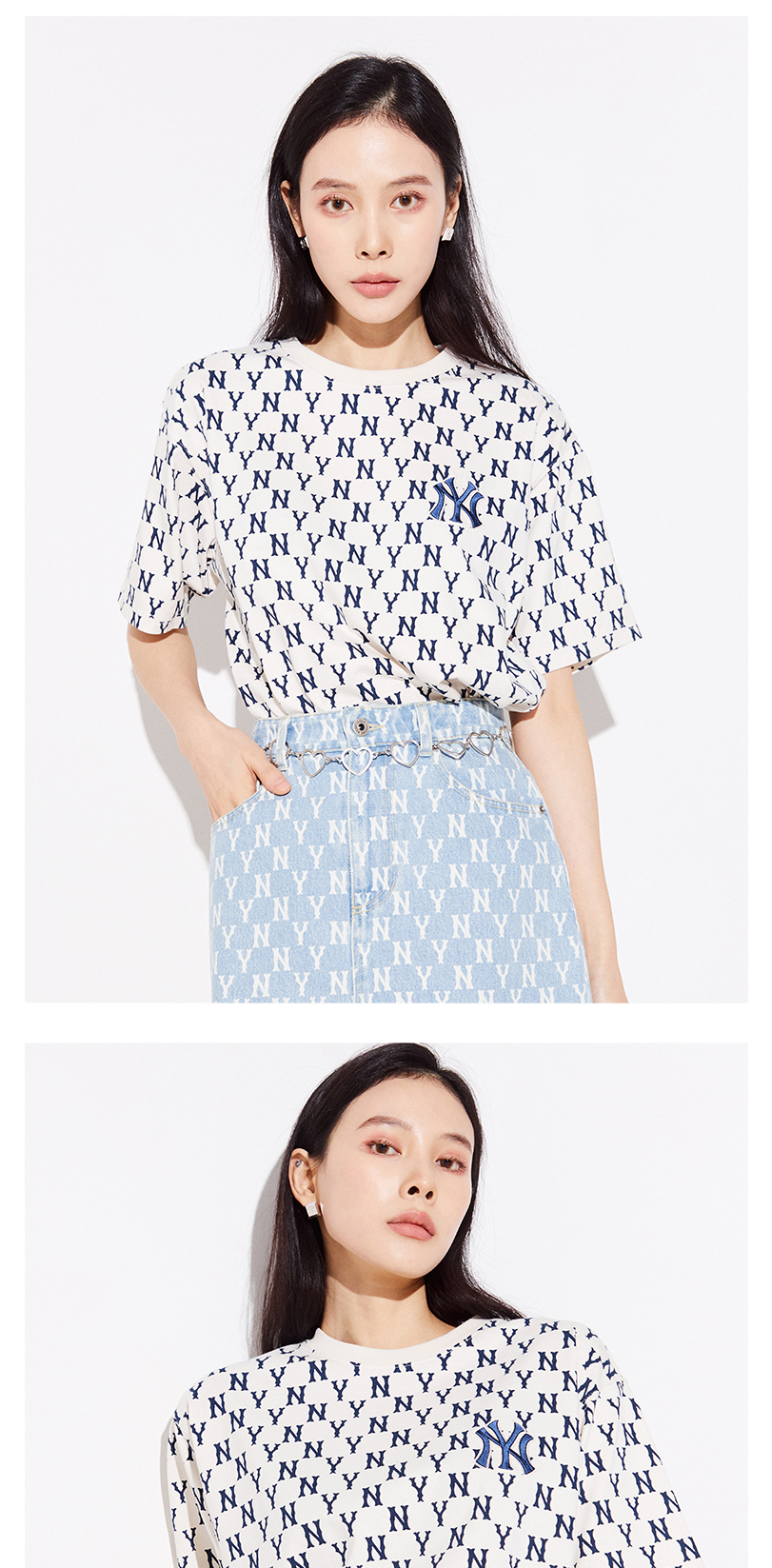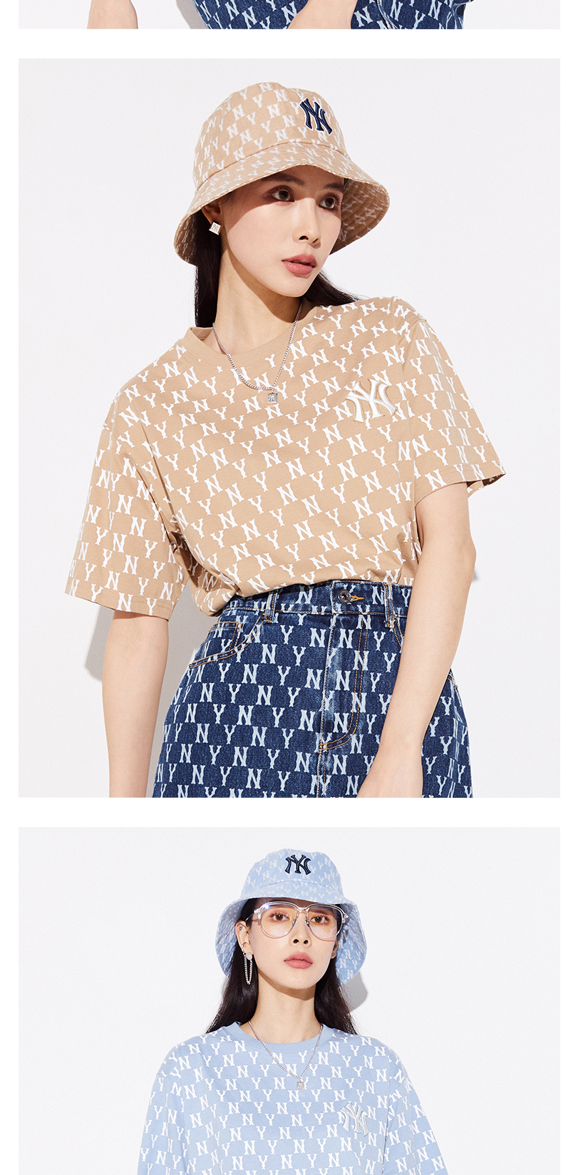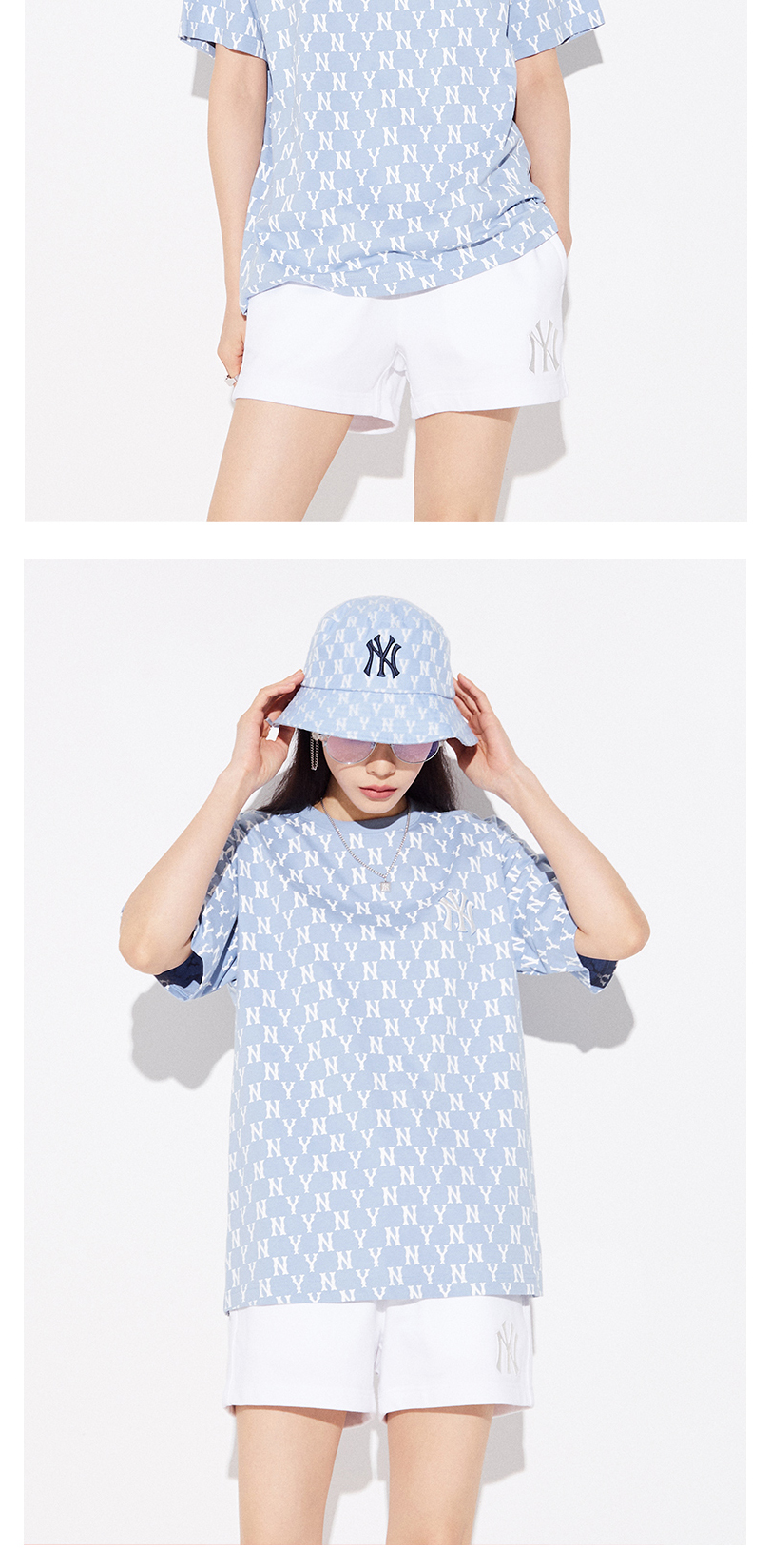 MLB男女情侣T恤复古老花圆领短袖运动休闲潮22春夏新款3ATSM1023