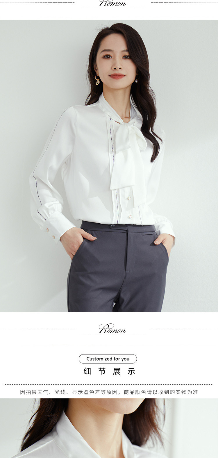 【高定款】罗蒙女士衬衫精致明线撞色洋气休闲商务百搭长袖衬衣女