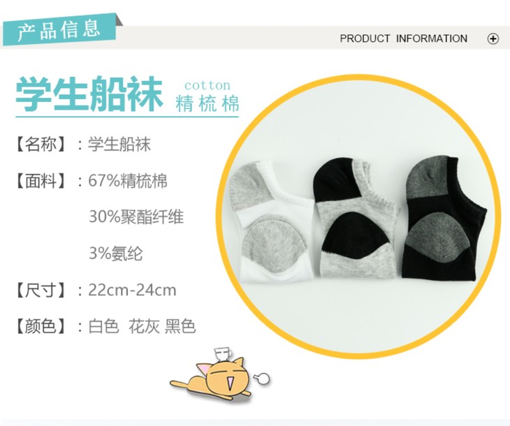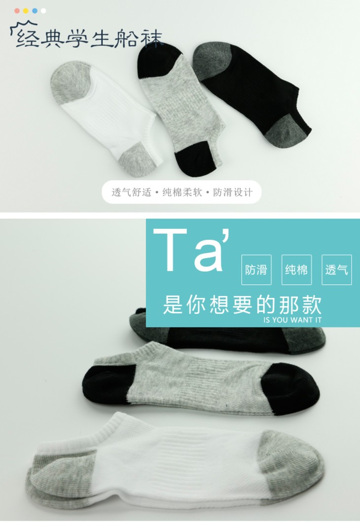 【19元6双】10岁以上丨大童学生精梳棉袜子 经典三色短袜船袜【813307】