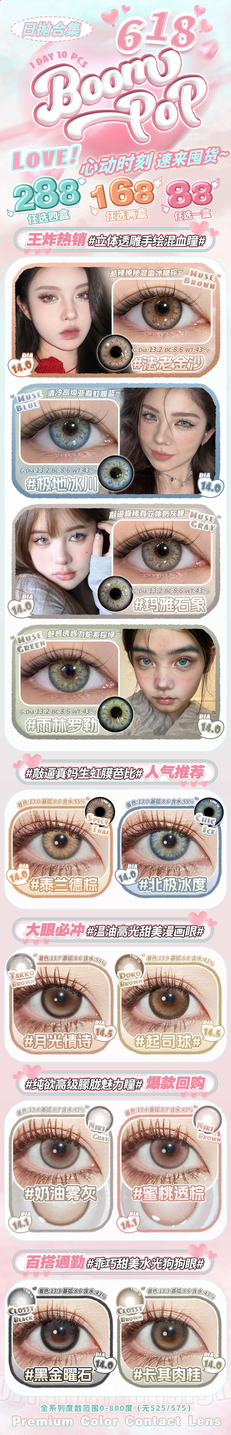 (618囤货活动)(日抛)Boompop 88/盒 168/2盒 288/4盒(0-800度 不含525/575)