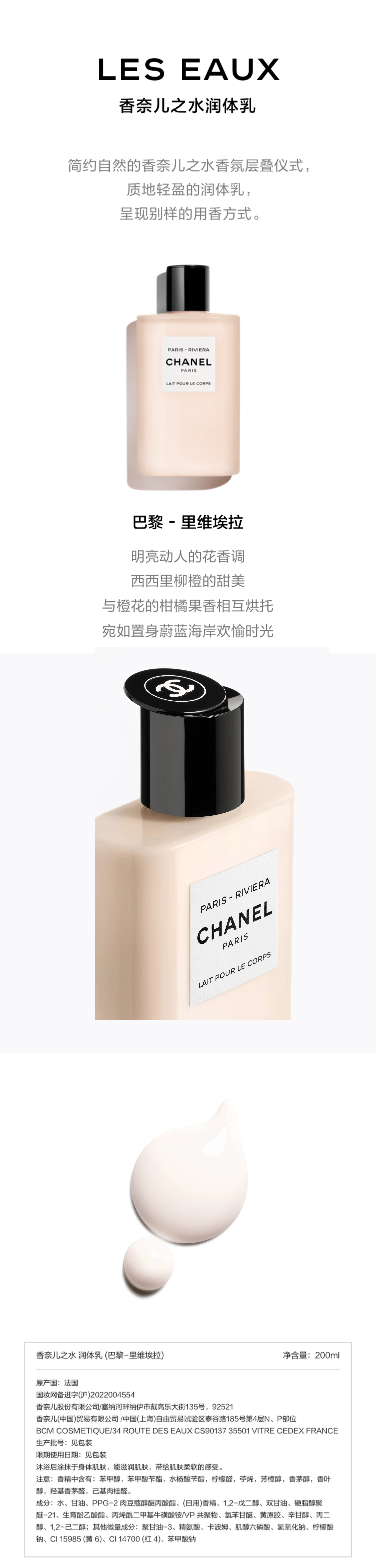香奈儿 巴黎 里维埃拉身体乳 200ml