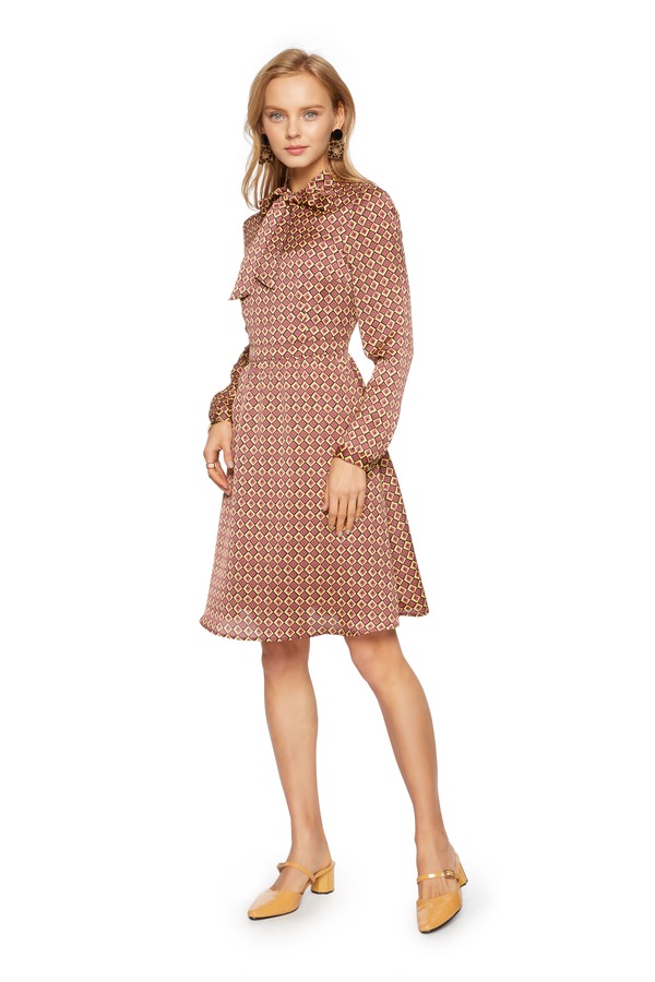 SUMMER & SAGE 复古菱格系带连衣裙 6207
