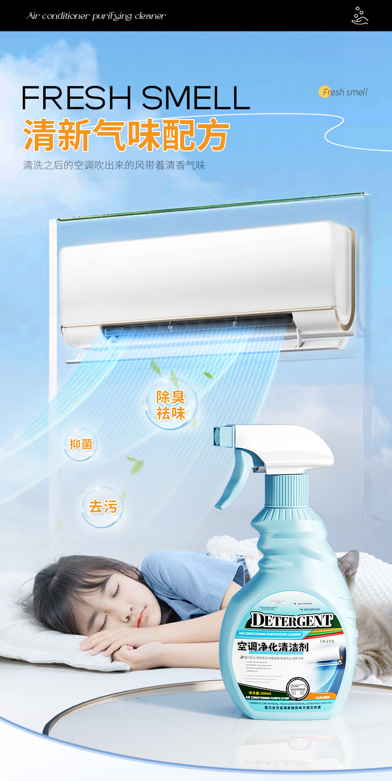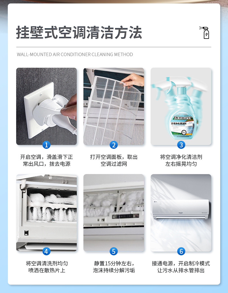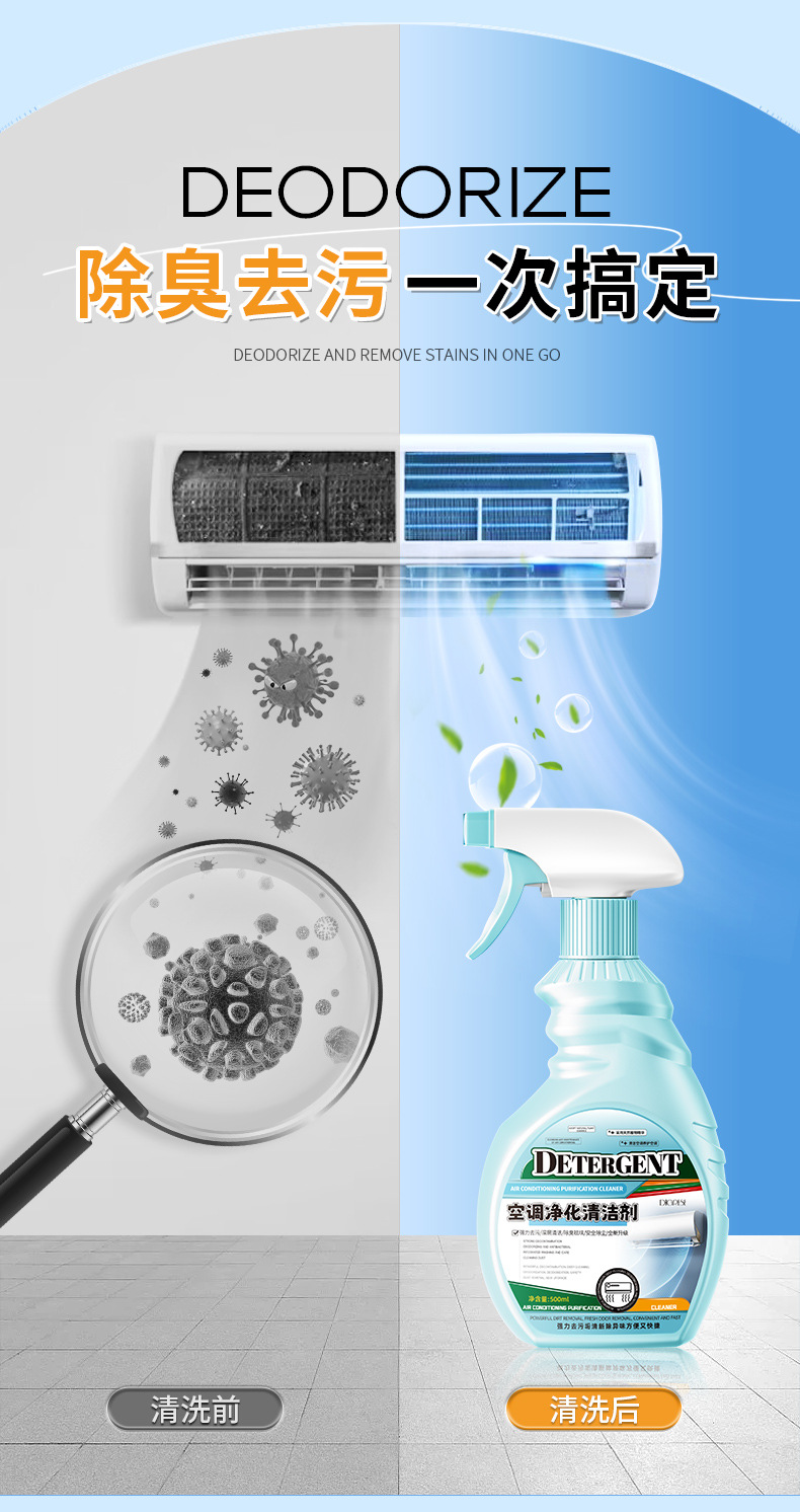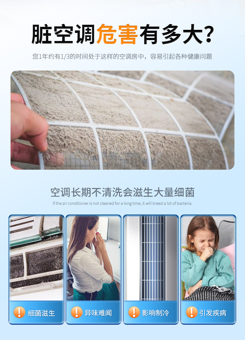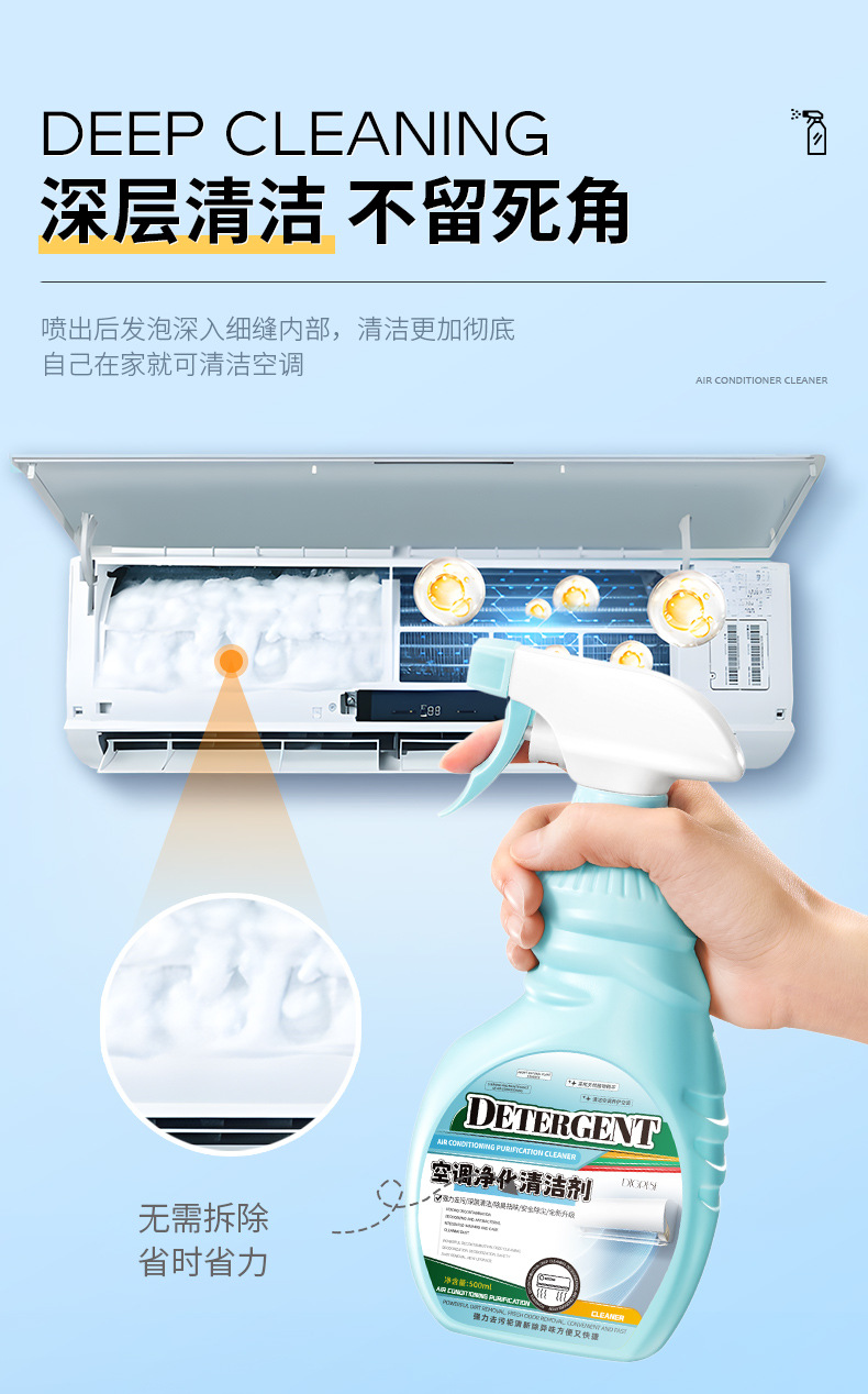 【第二件半价!】清新除尘,抑菌净味,空调污渍轻松去除。一款家用内外机专用喷雾泡沫款空调清洗剂,让你的家居环境更加健康、舒适!家用必备