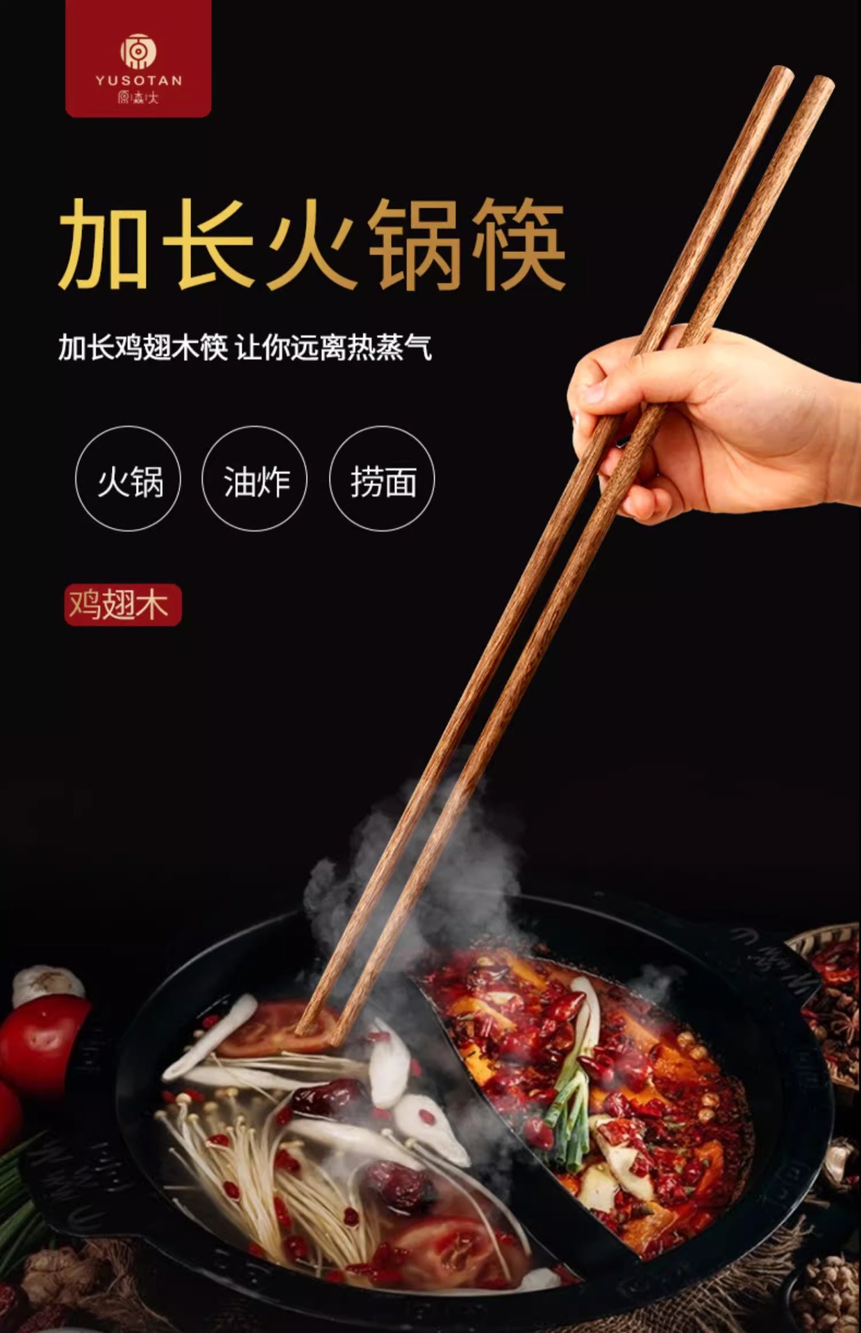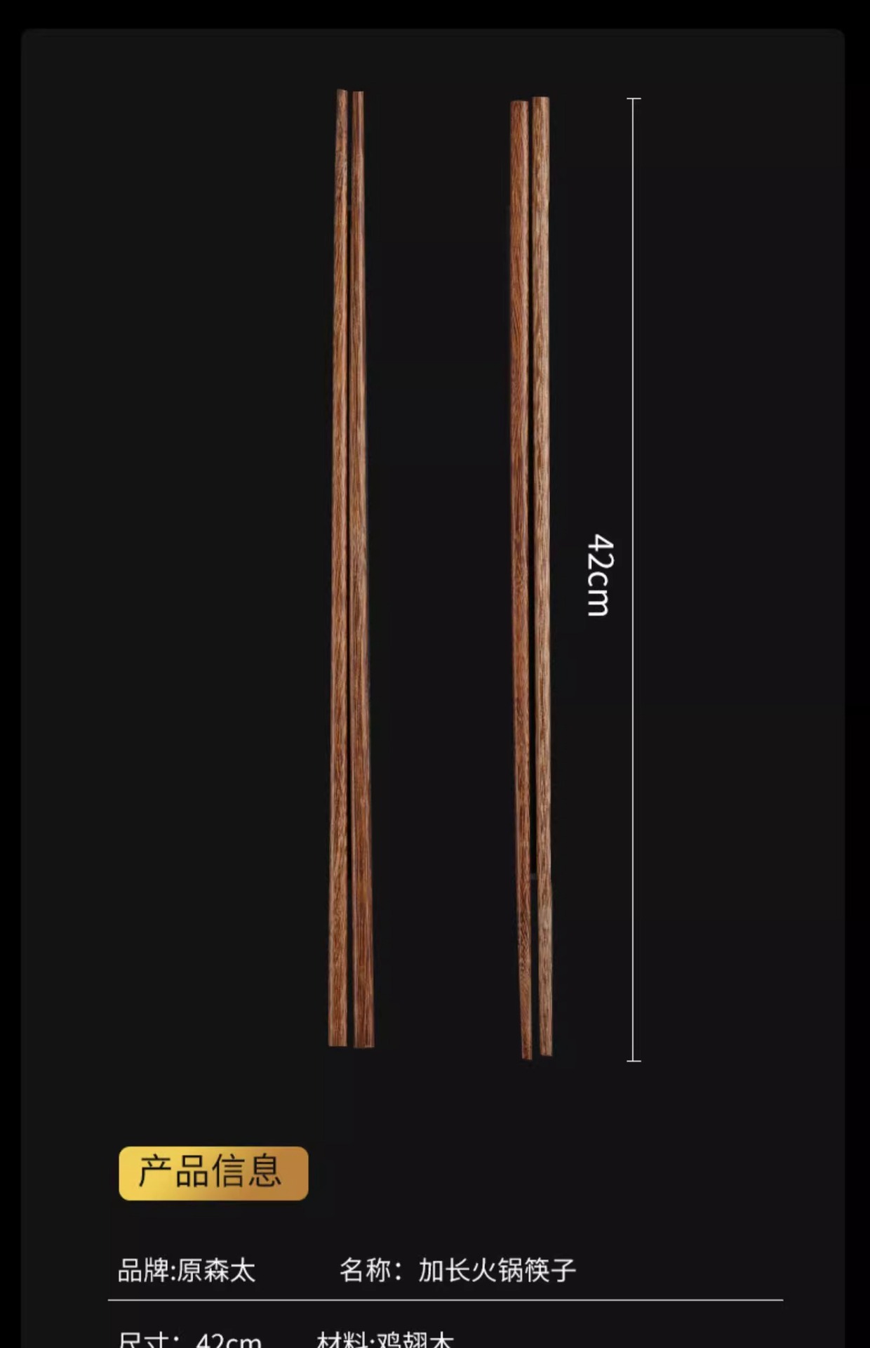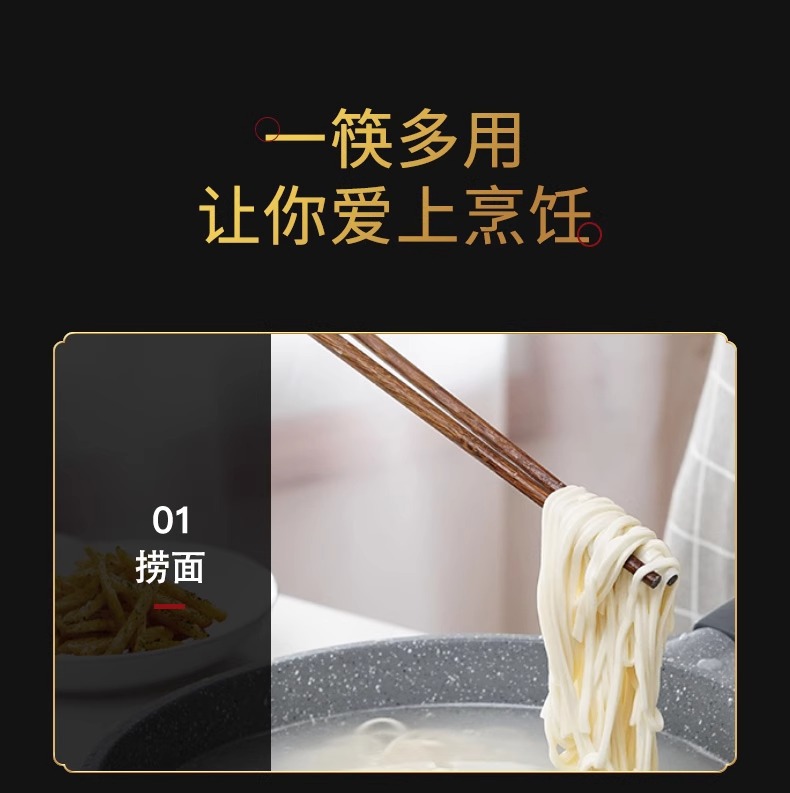 【无漆无蜡鸡翅木】原森太加长筷子捞面鸡翅木筷家用火锅公筷防烫炸油条超长加粗煮面
