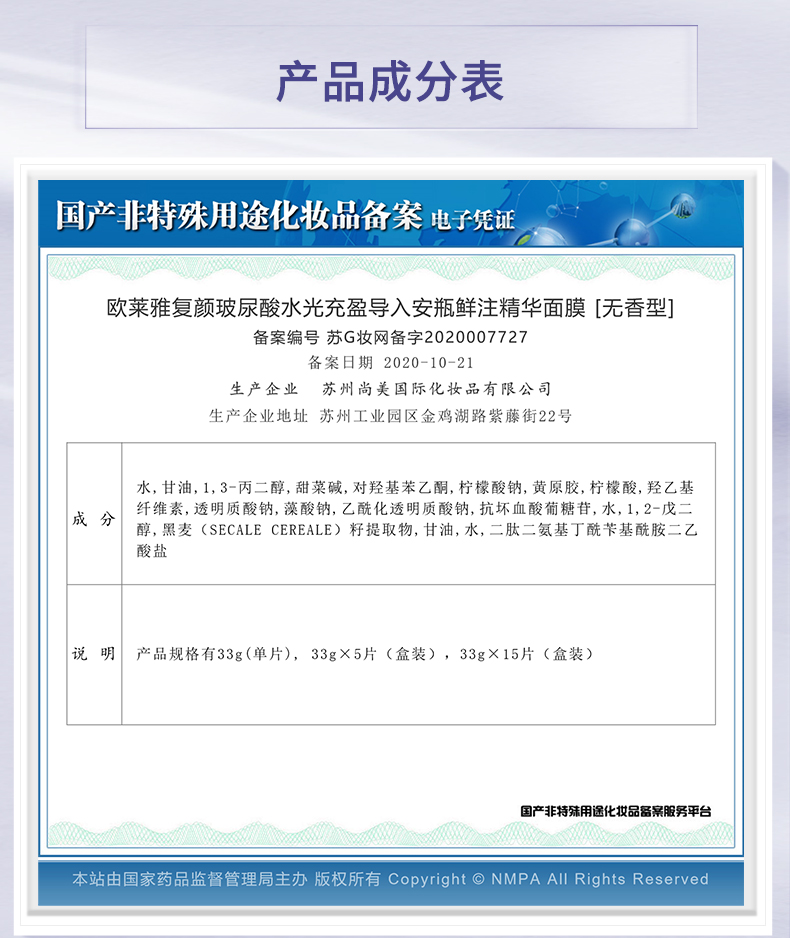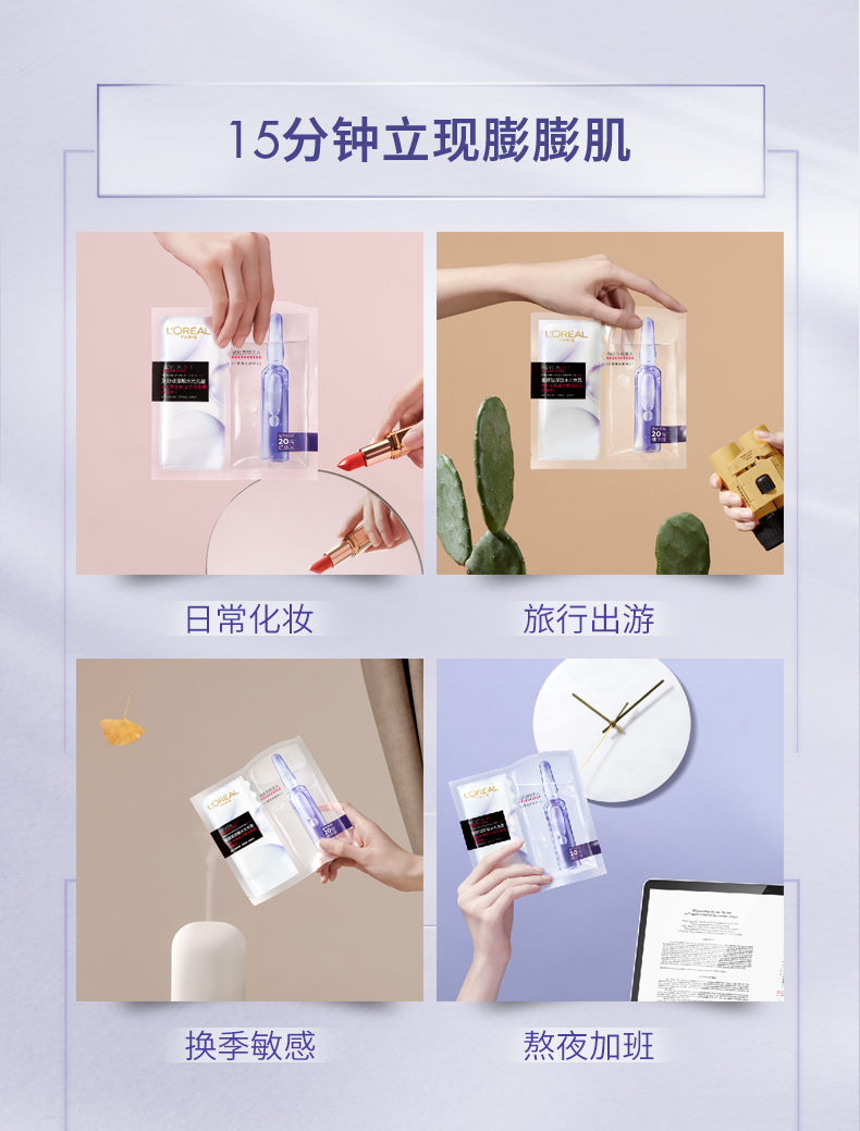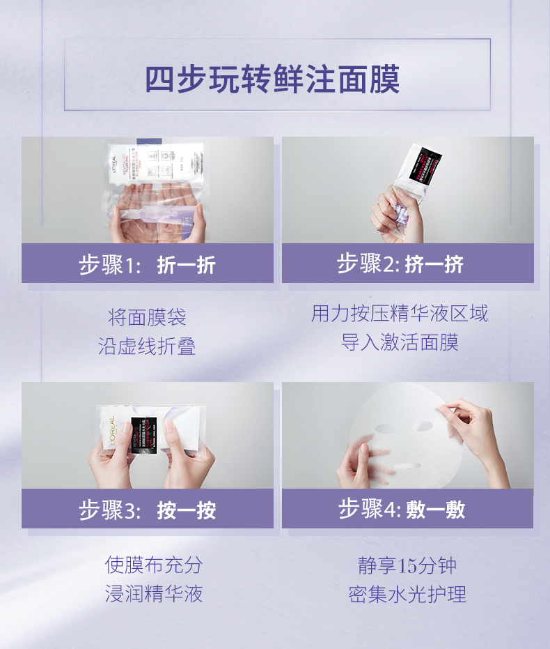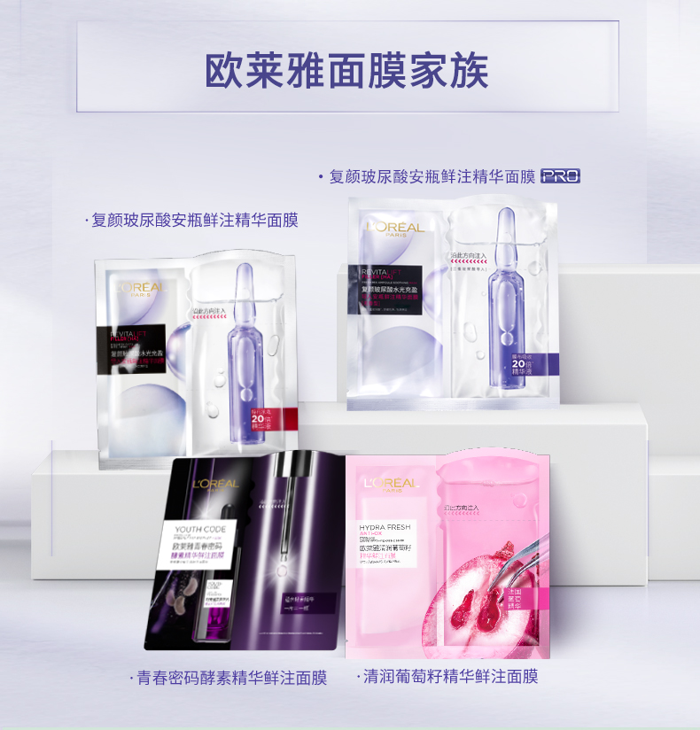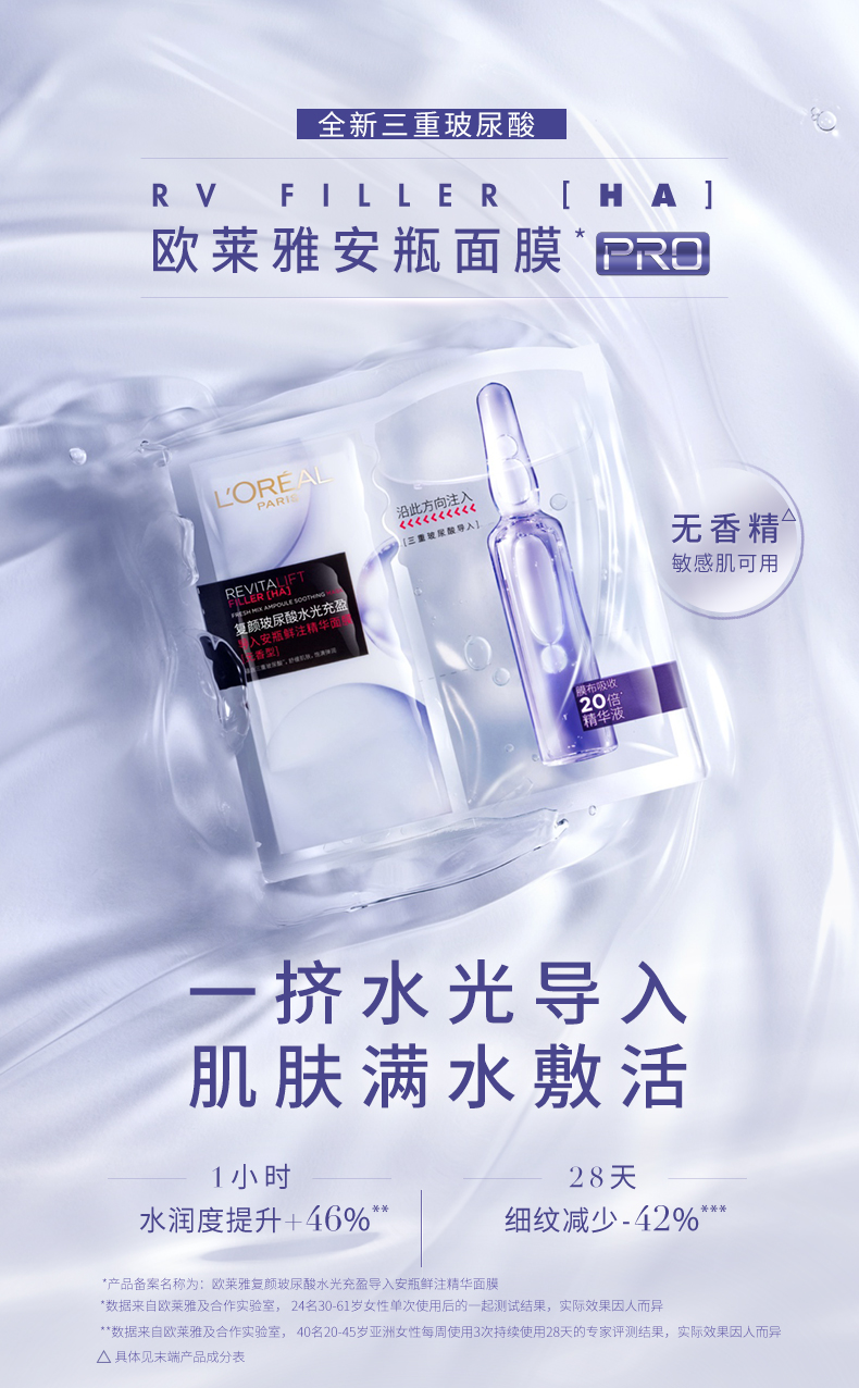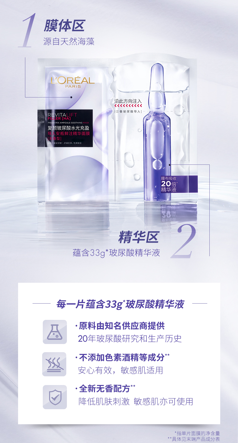 欧莱雅(LOREAL)复颜玻尿酸水光充盈导入安瓶鲜注精华面膜 有香款/PRO款 交替发货