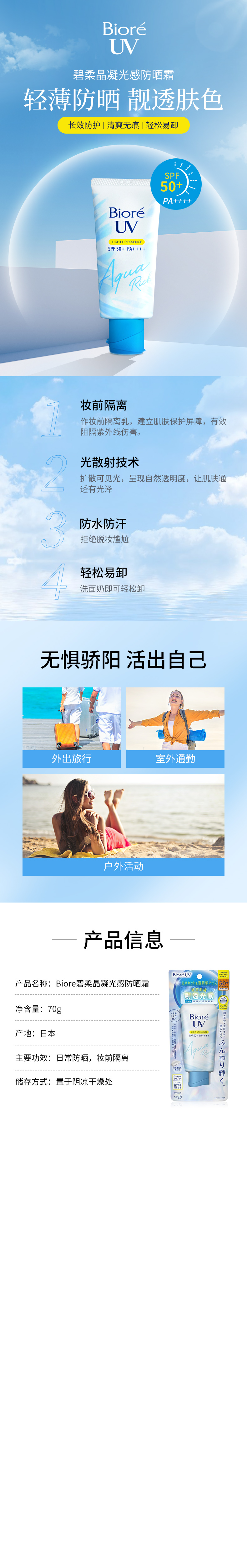 日本直邮 碧柔晶凝光感防晒霜清爽控油70g