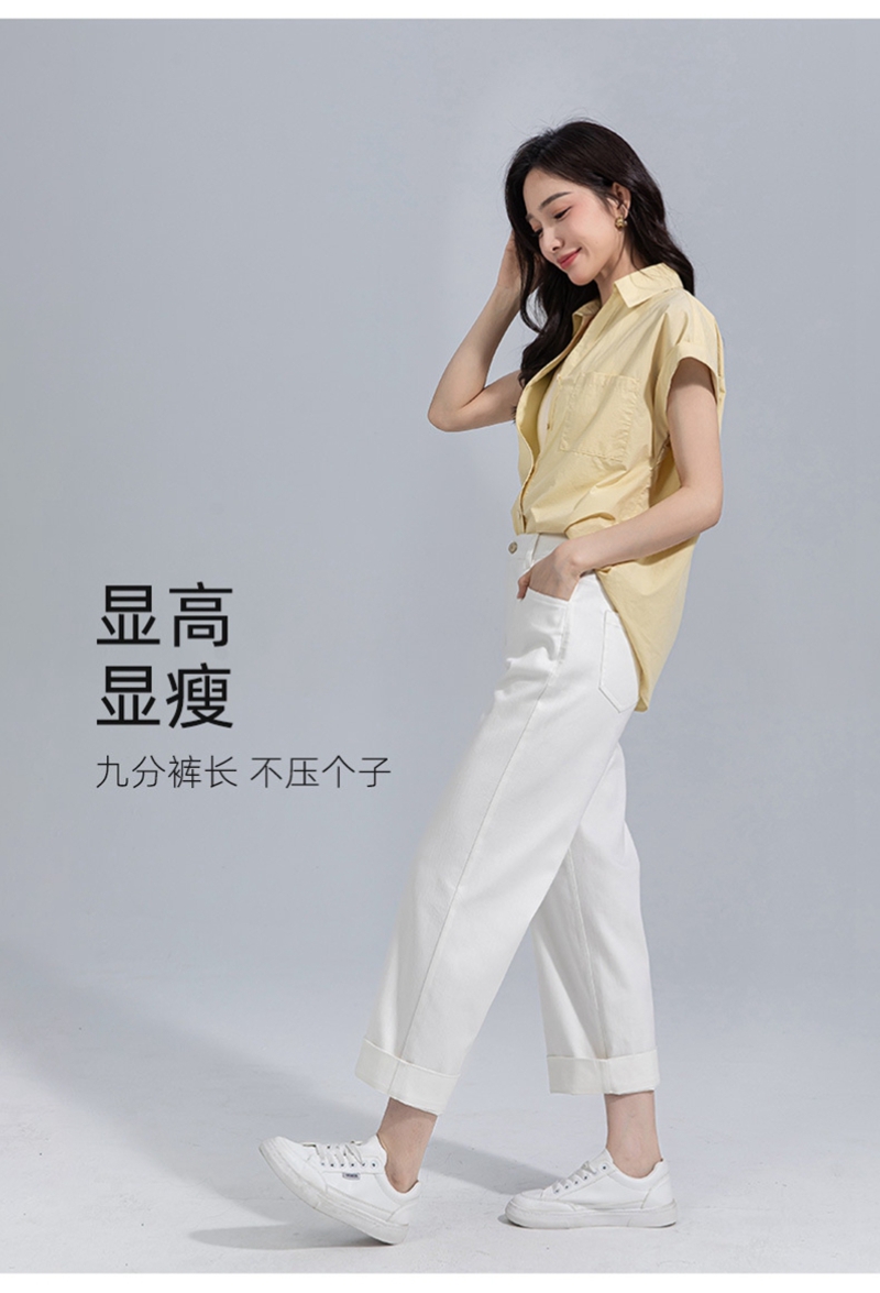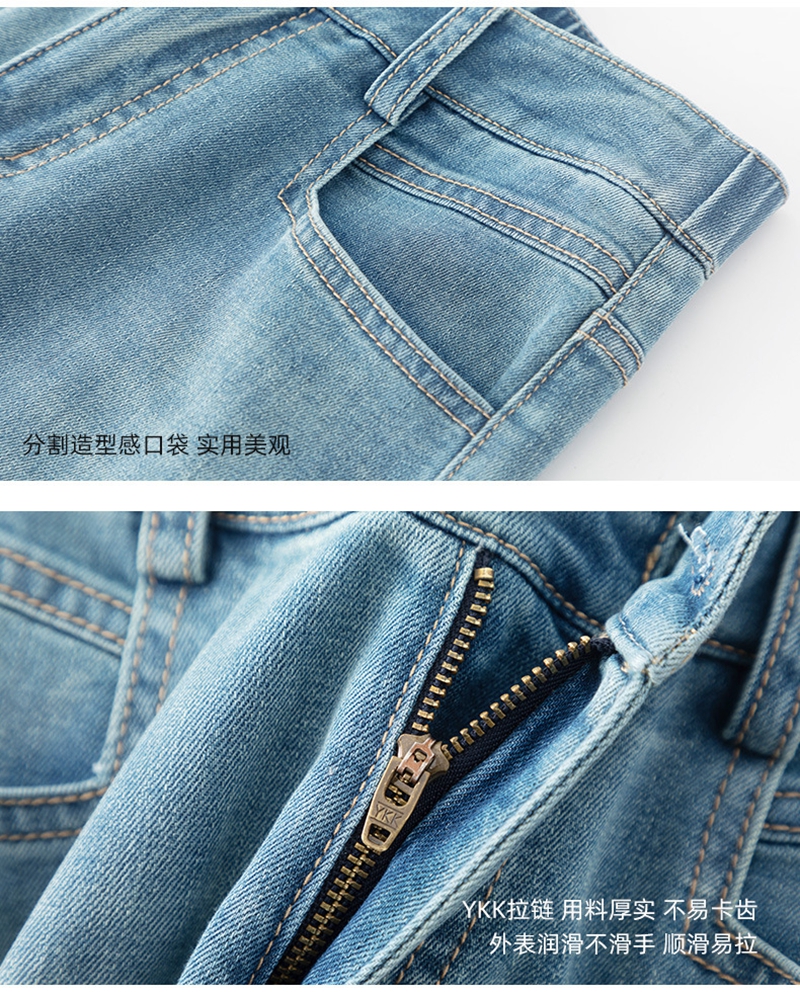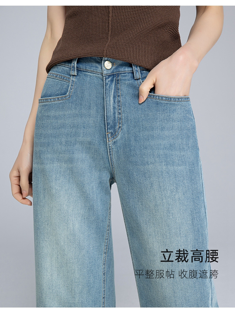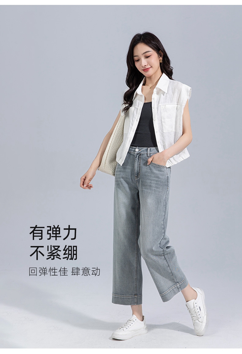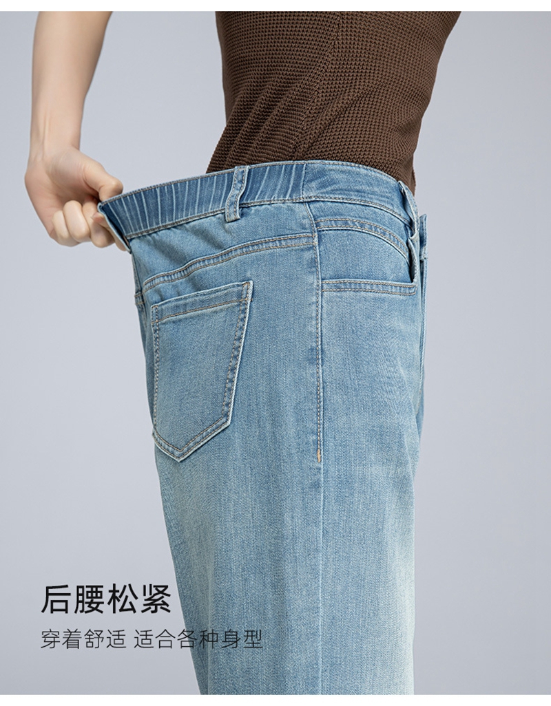 春夏高腰拉链后松紧腰垂感九分直筒牛仔裤