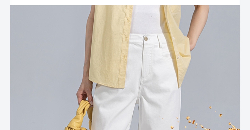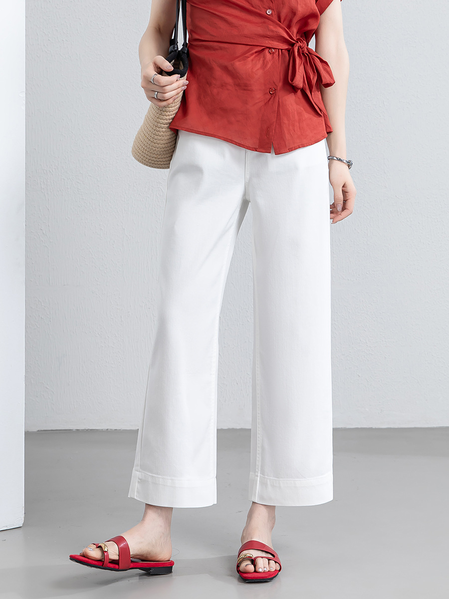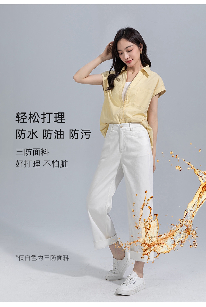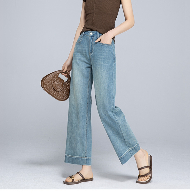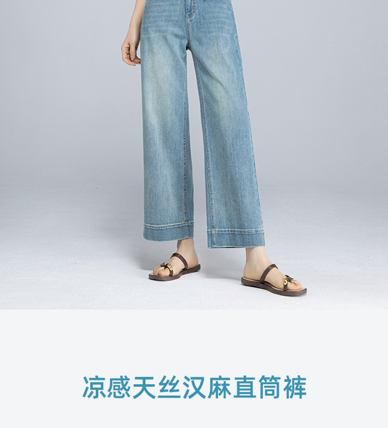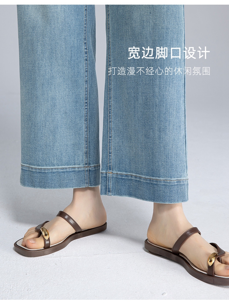 春夏高腰拉链后松紧腰垂感九分直筒牛仔裤