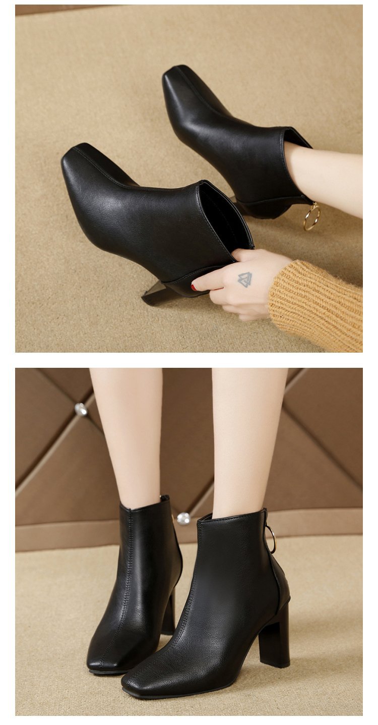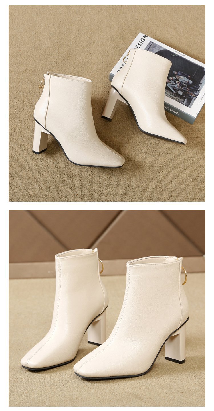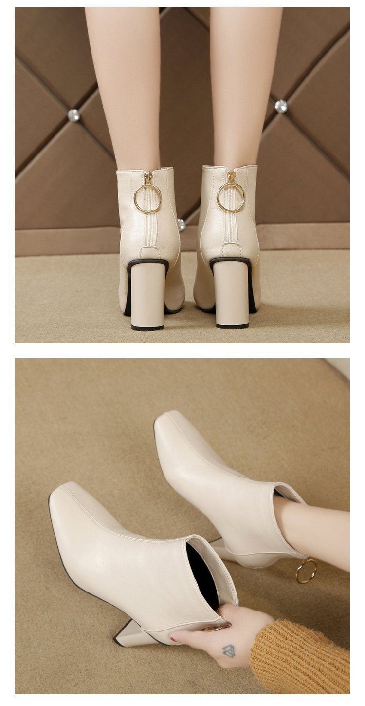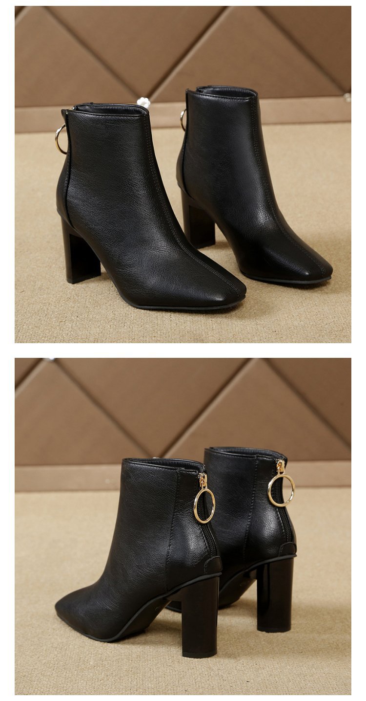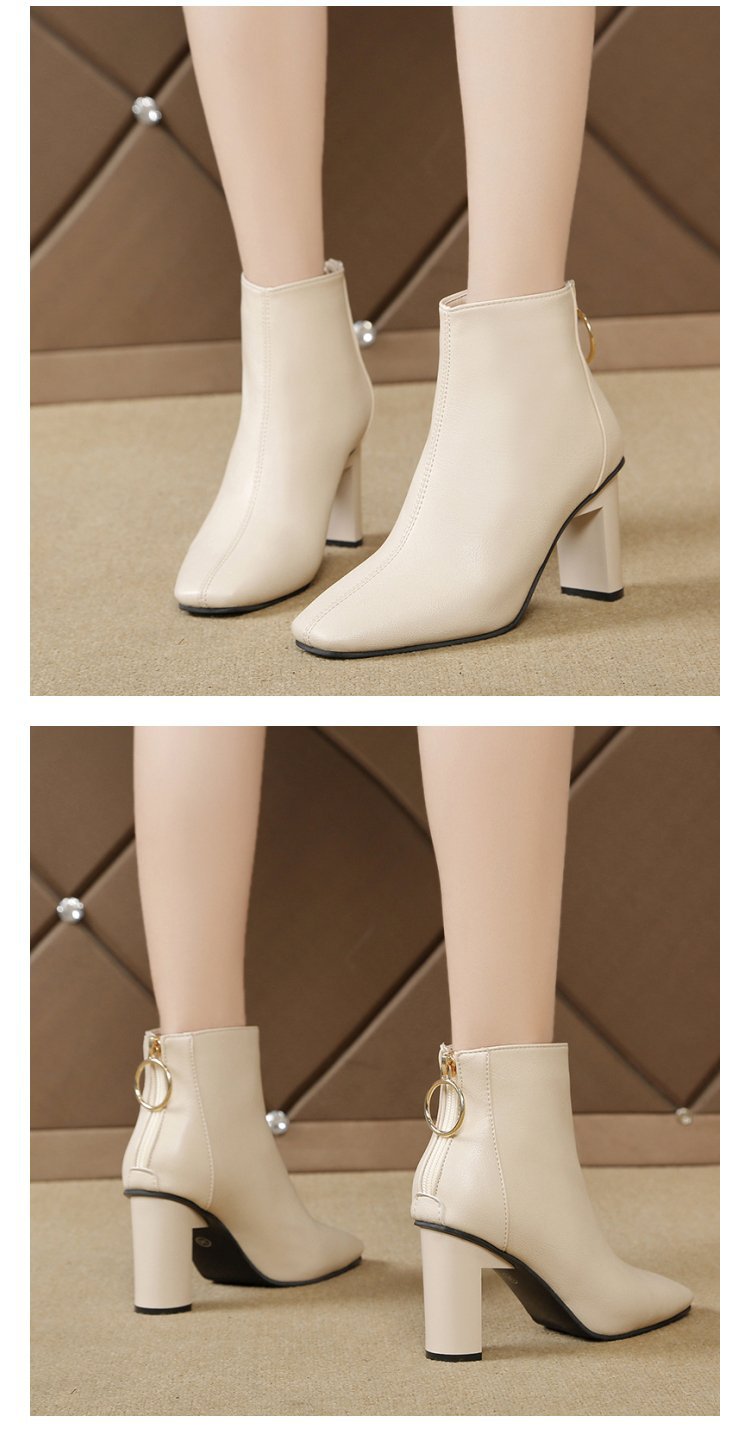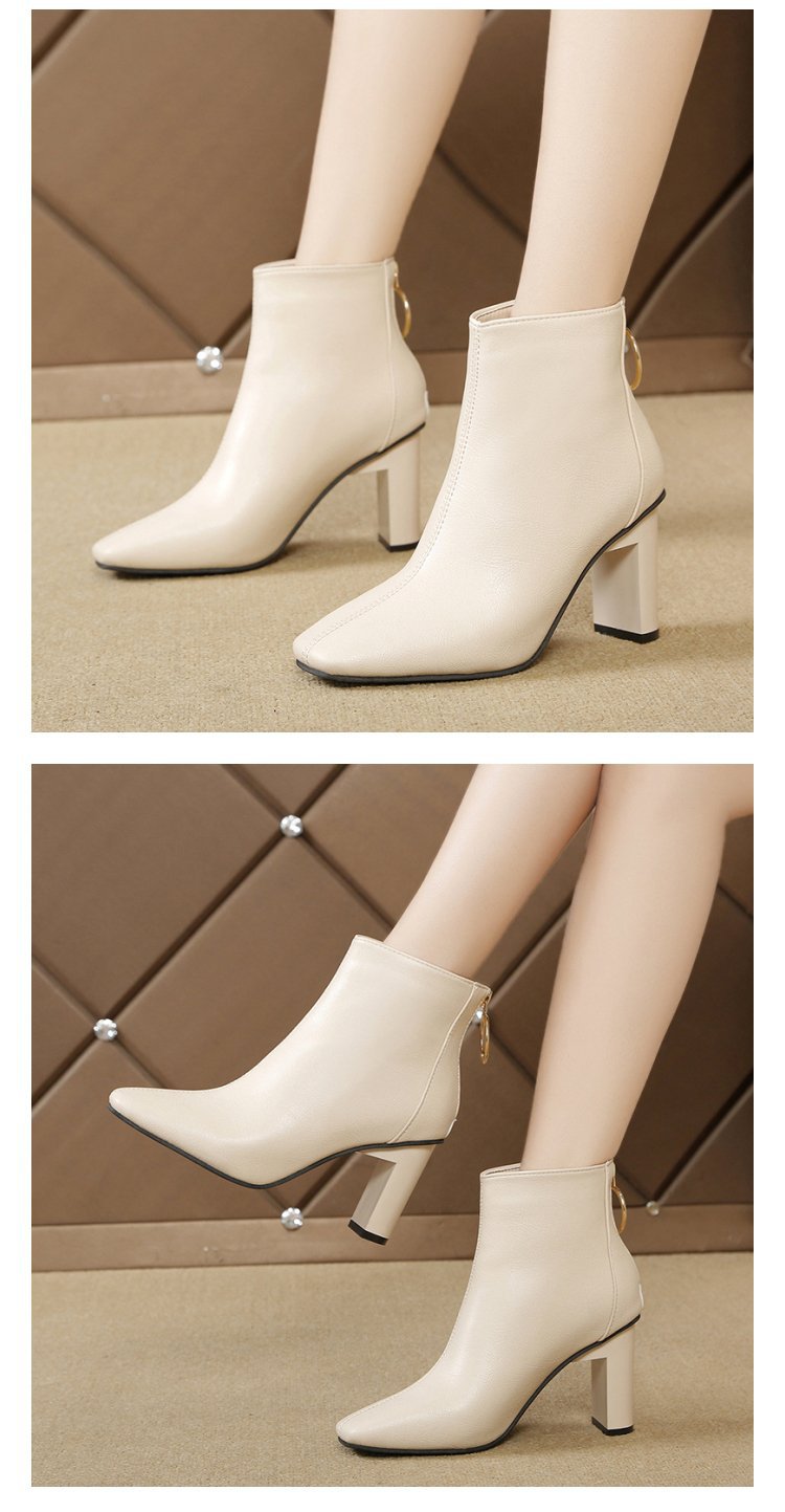 马丁靴女式2024新款靴子秋冬韩版时尚方头短靴女士高跟裸靴新款爆款小红书同款