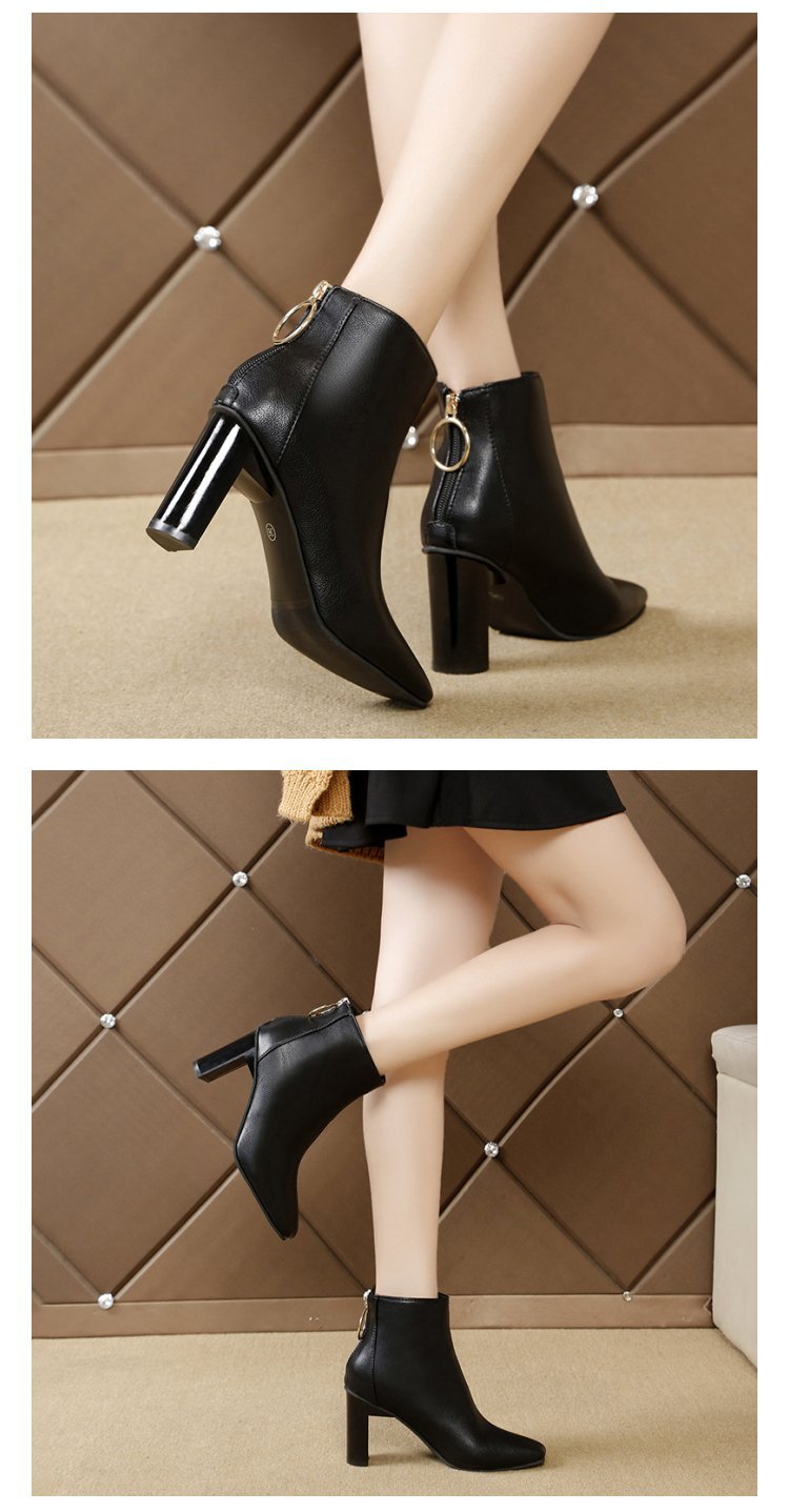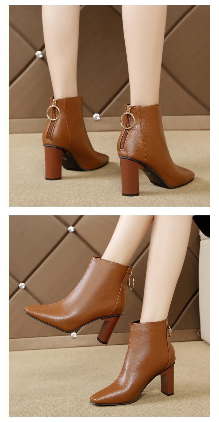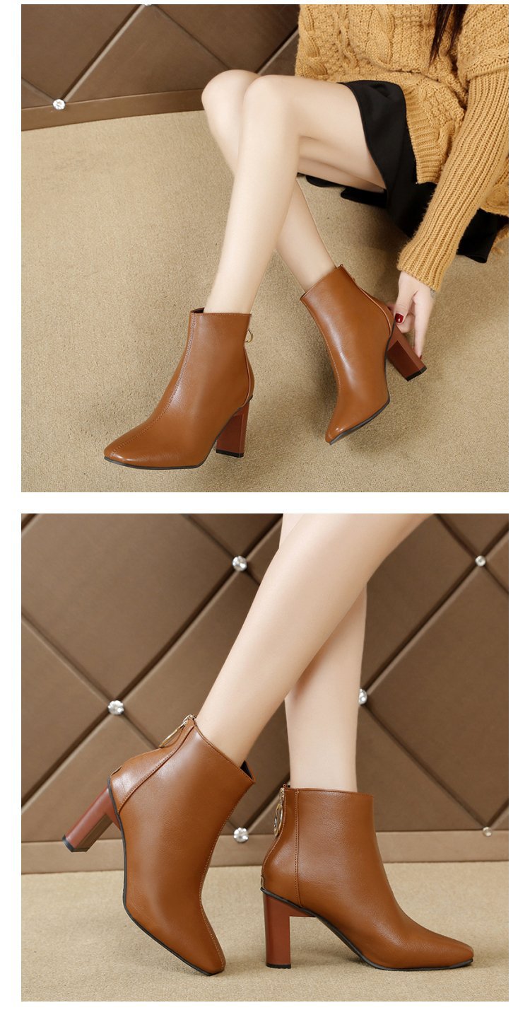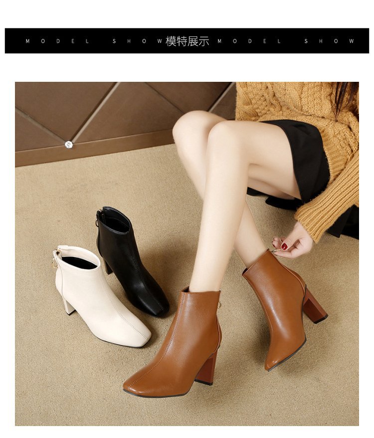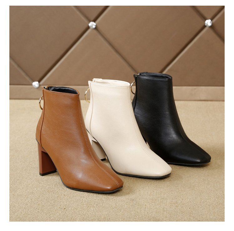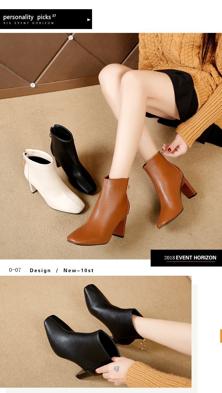 马丁靴女式2024新款靴子秋冬韩版时尚方头短靴女士高跟裸靴新款爆款小红书同款