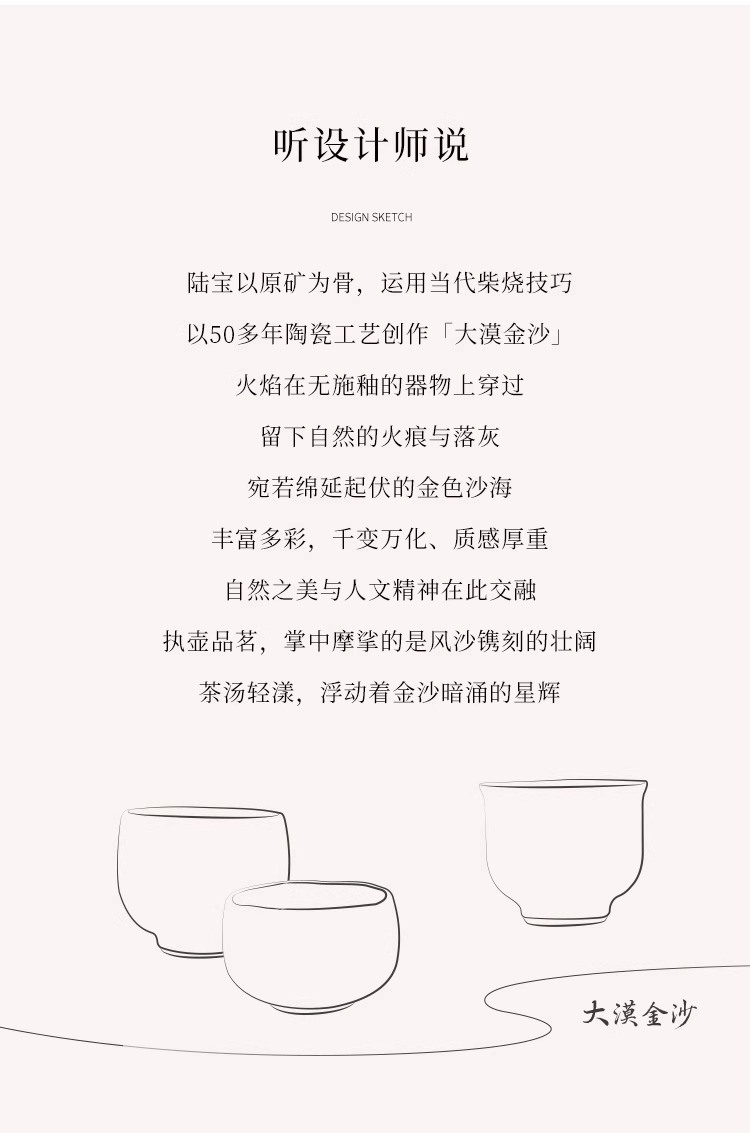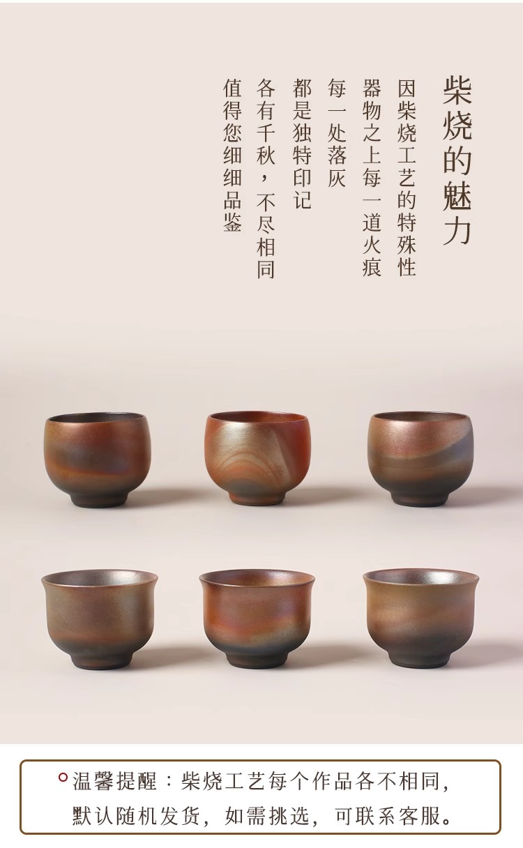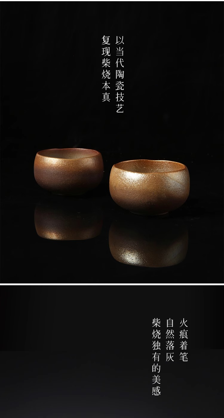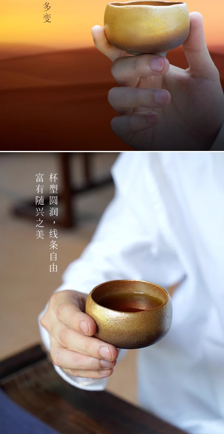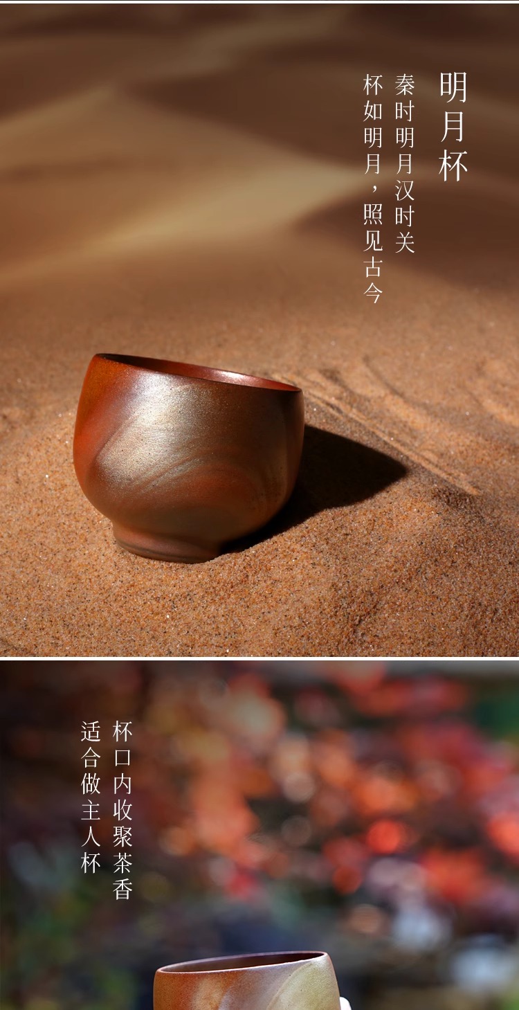 【样品特惠6折,仅1个,无货退款】台湾陆宝柴烧大漠金沙功夫茶杯品茗杯高档主人杯单个礼盒装单杯晚霞杯60ml明月杯70ml长风杯70ml