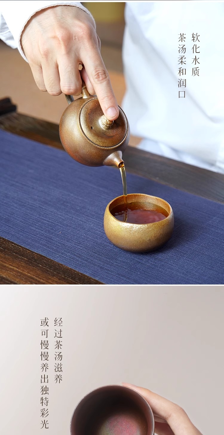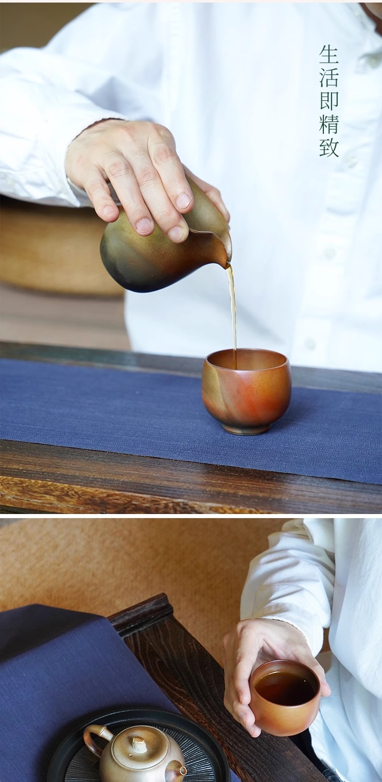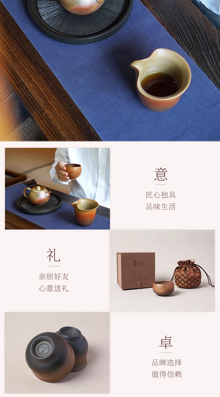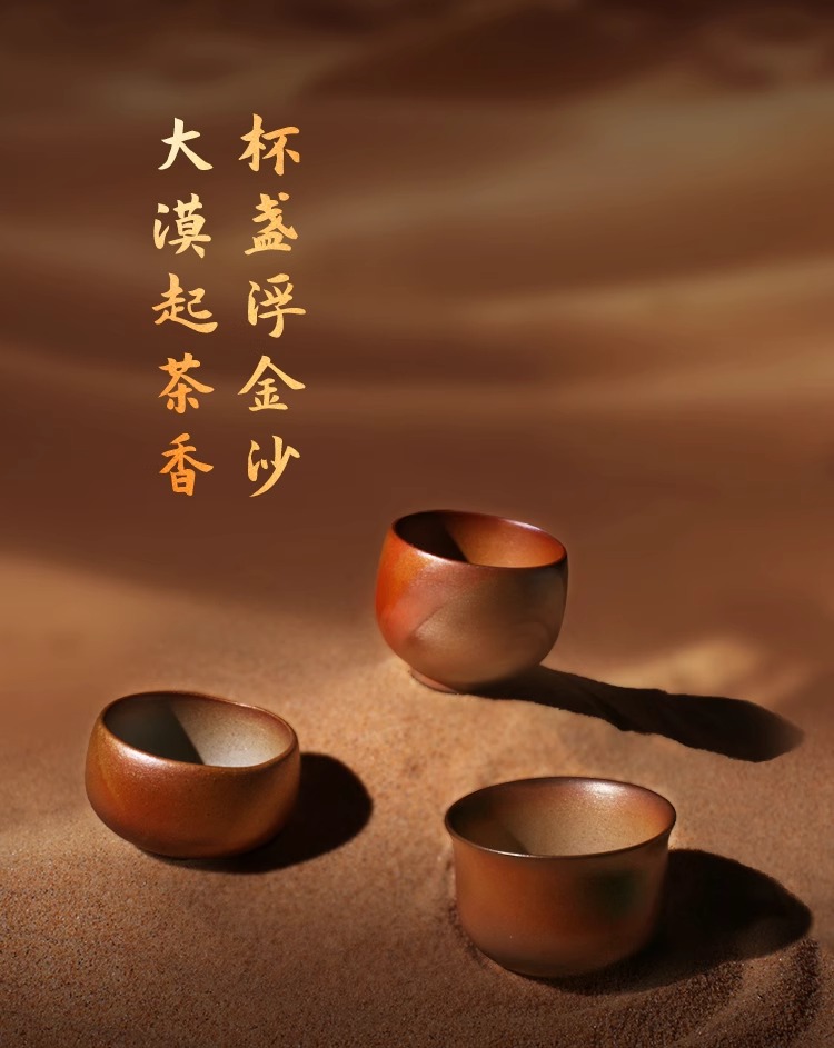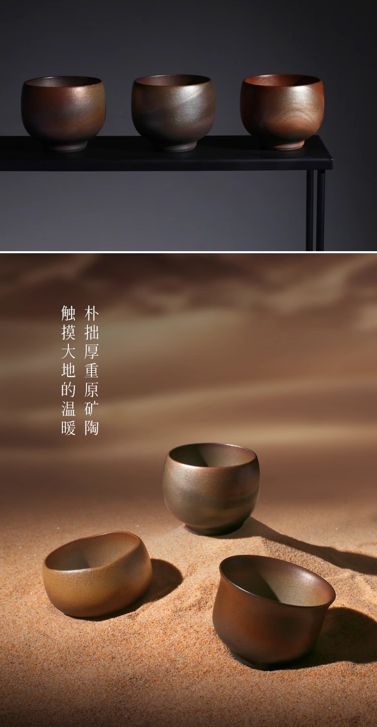 【样品特惠6折,仅1个,无货退款】台湾陆宝柴烧大漠金沙功夫茶杯品茗杯高档主人杯单个礼盒装单杯晚霞杯60ml明月杯70ml长风杯70ml