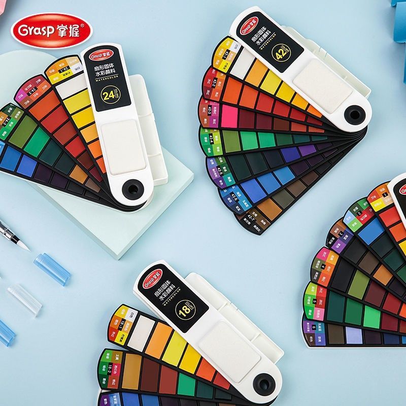 扇形固体水彩颜料颜料盒小型便携式固体水粉颜料可折叠智能取色笔