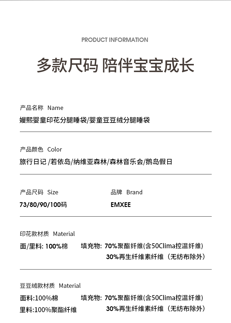 【宝宝安睡】嫚熙婴童小恒星印花分腿睡袋