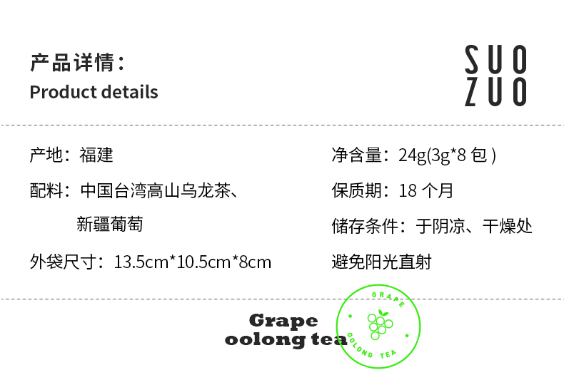 SUOZUO所作 葡萄乌龙茶办公水果粒茶三角包组合袋泡花草茶美容茶
